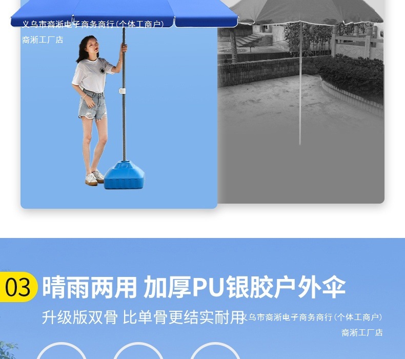 • [이중골 16본] 사파이어 블루 3.0m [이중 은색 플라스틱 우산 표면] + 두꺼운 우산 기둥