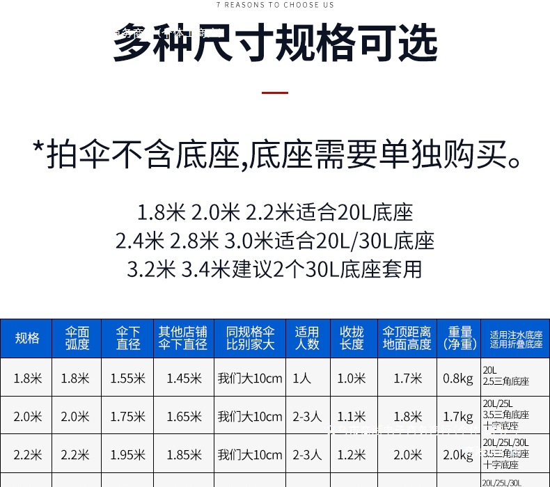 • Dahong 2.8m 두꺼운 은색 접착제 + 두꺼운 우산 기둥
