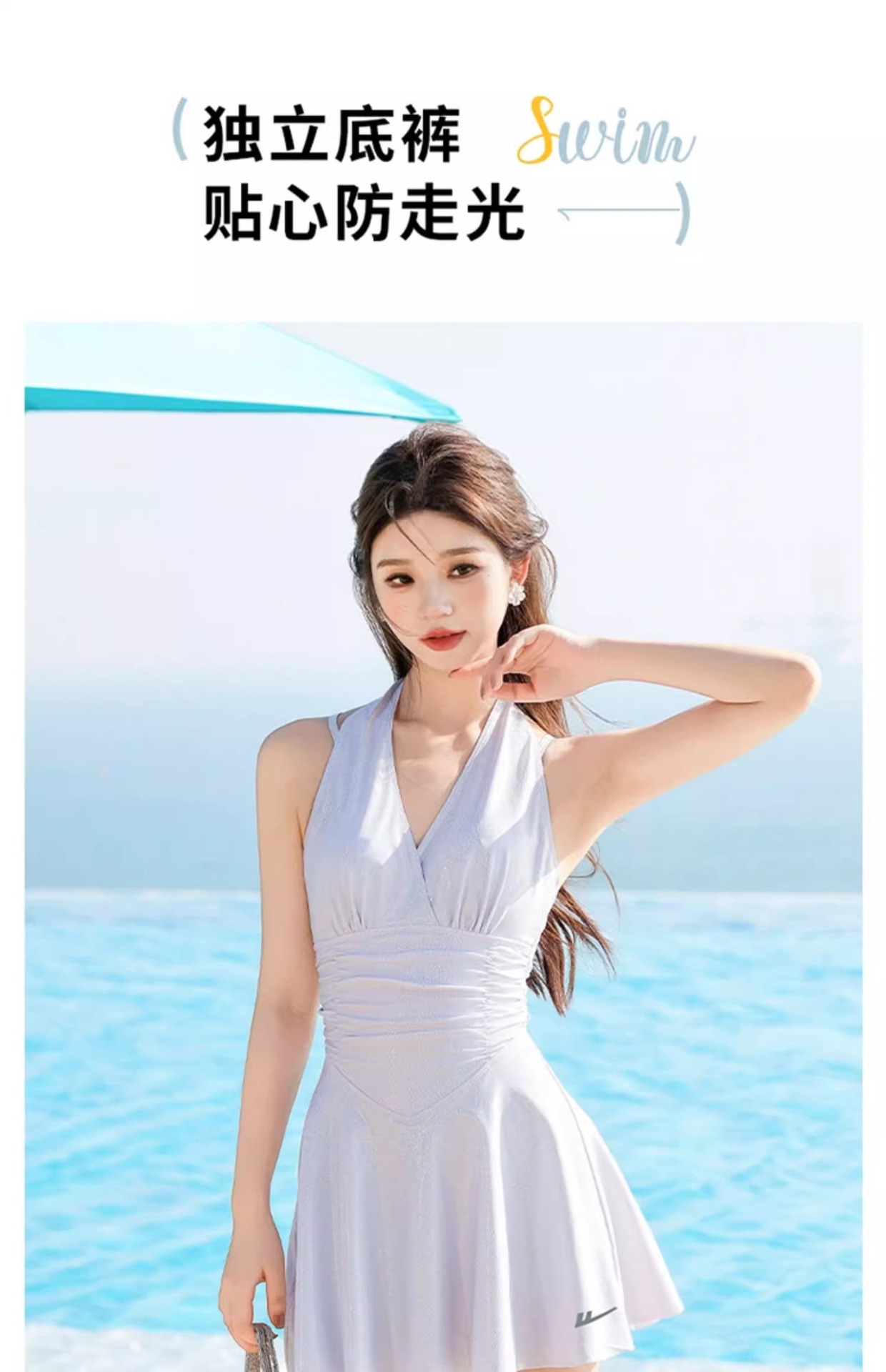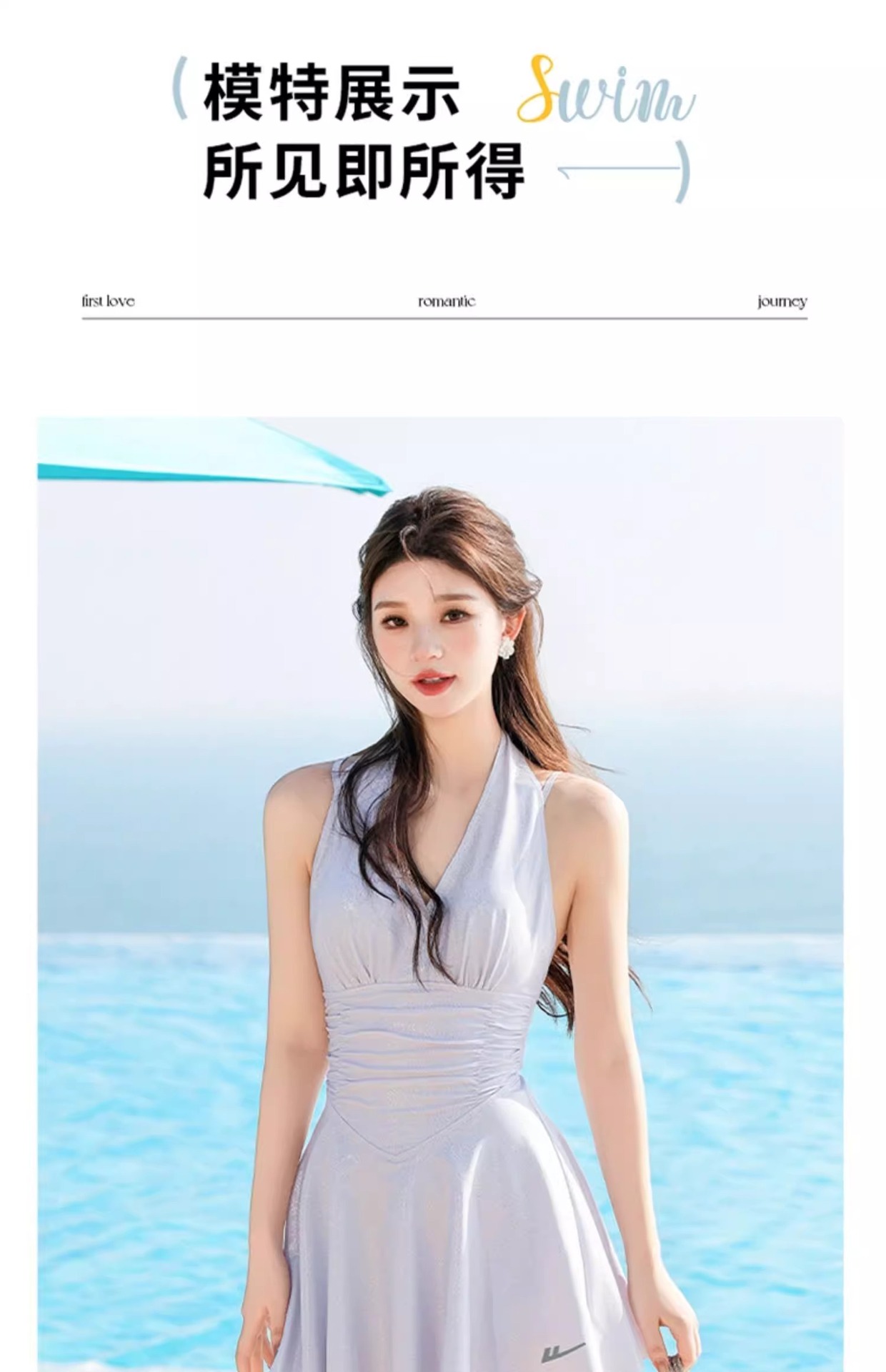 풀백 수영복 여성 스커트 원피스 새로운 하이 엔드 2025 새로운 여름 백리스 성숙한 섹시한 휴가 수영복