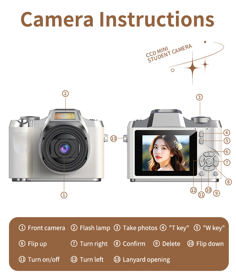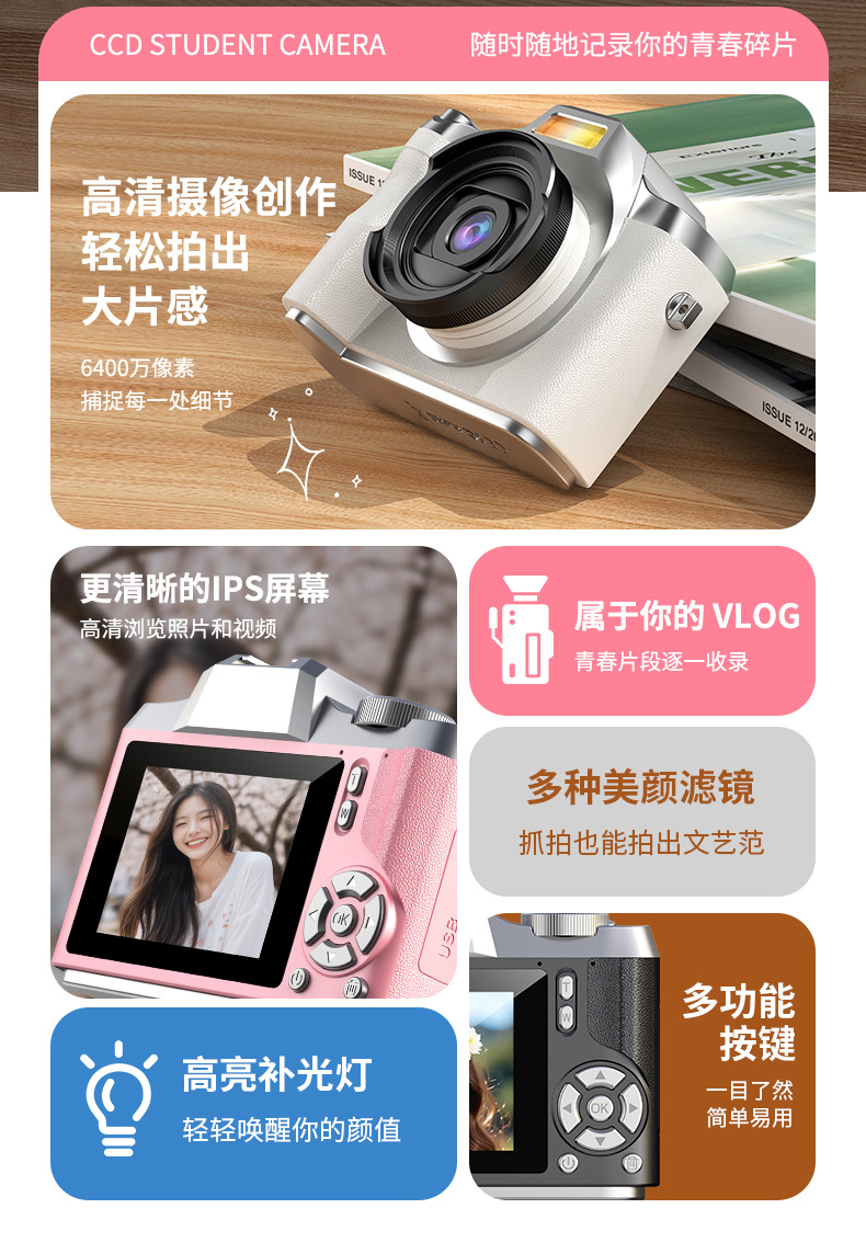 레트로 HD CCD 카메라 HD 셀카 블로그 보급형 학생 디지털 카메라 뷰티 휴대용 카메라