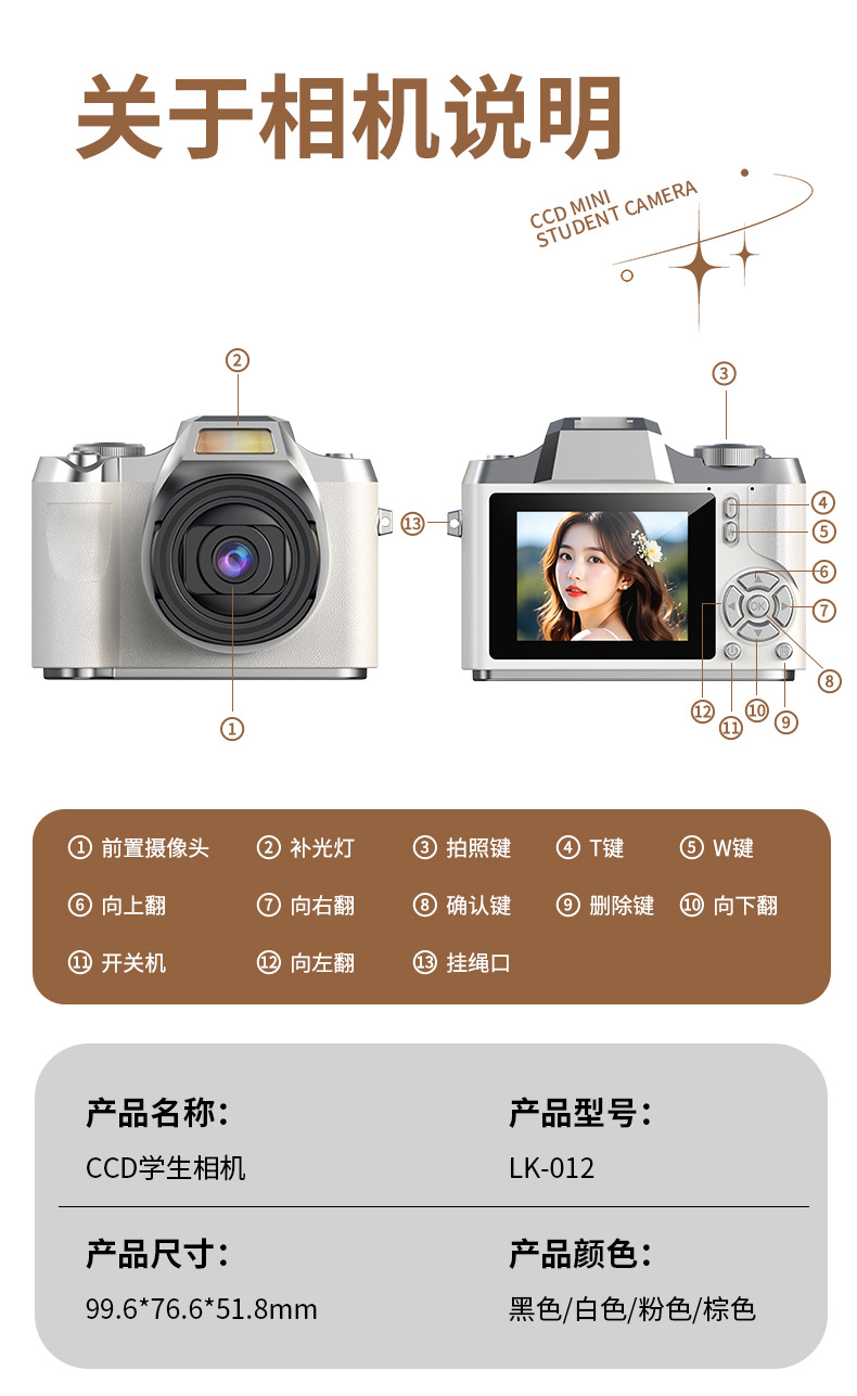 • LK-012 레트로 브라운 [표준 구성: 카메라 + 랜야드 + 카드 리더기 + 어댑터 + 충전 케이블 + 컬러 박스]