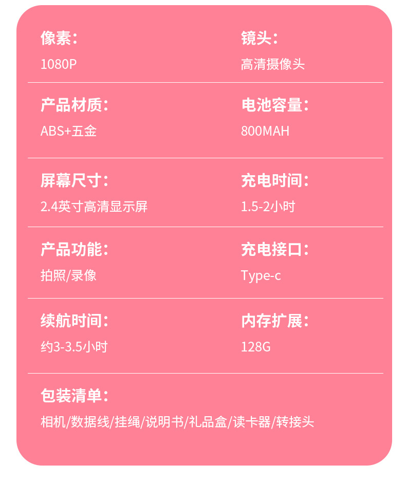 • LK-012 사쿠라 핑크 [고구성 : 32G 카드 + 카메라 + 랜야드 + 카드 리더기 + 어댑터 + 충전 케이블 + 컬러 박스]