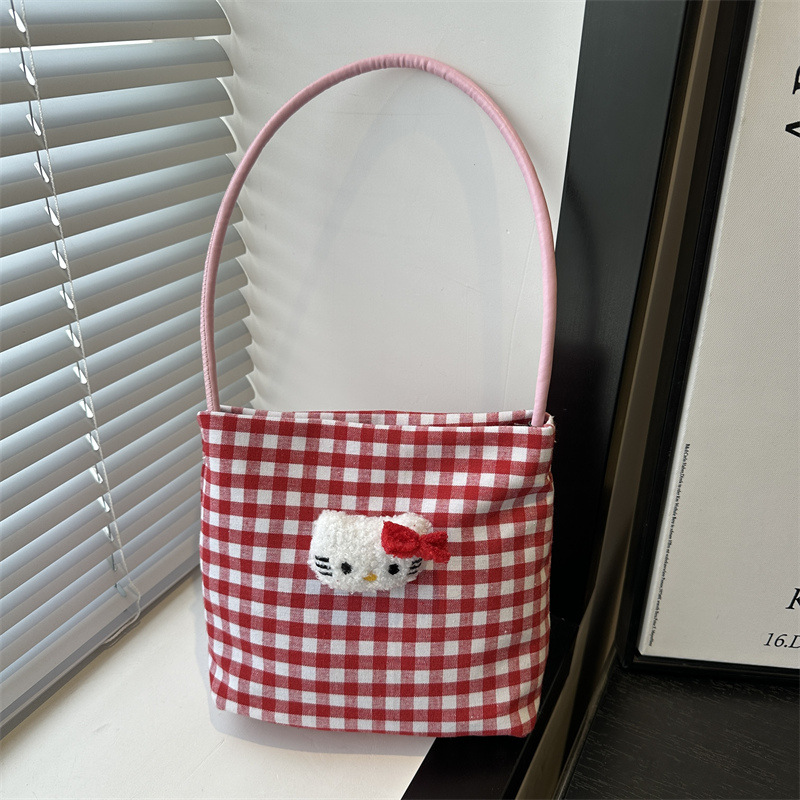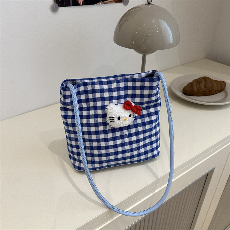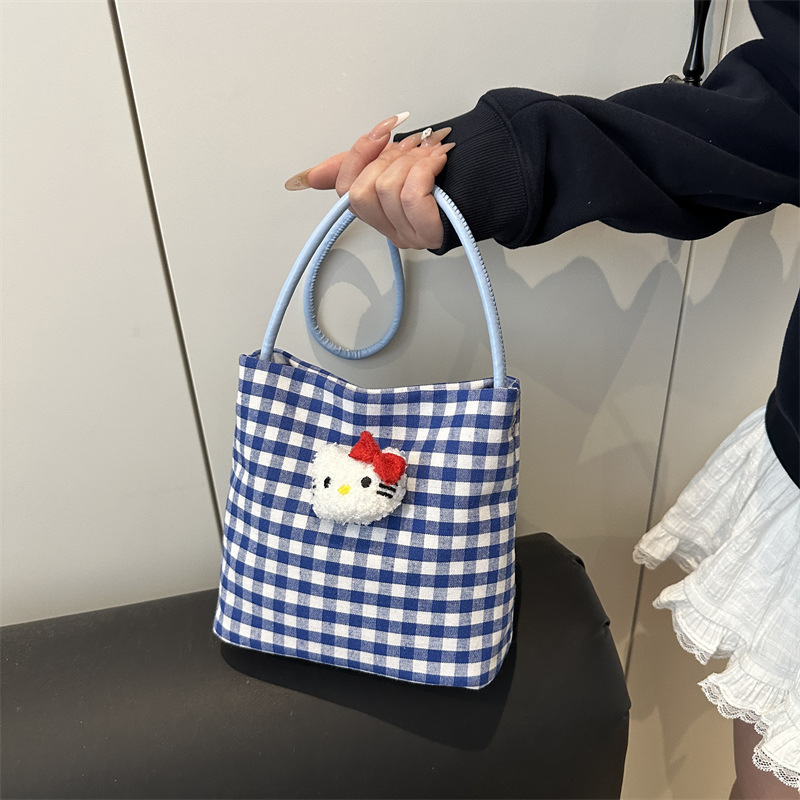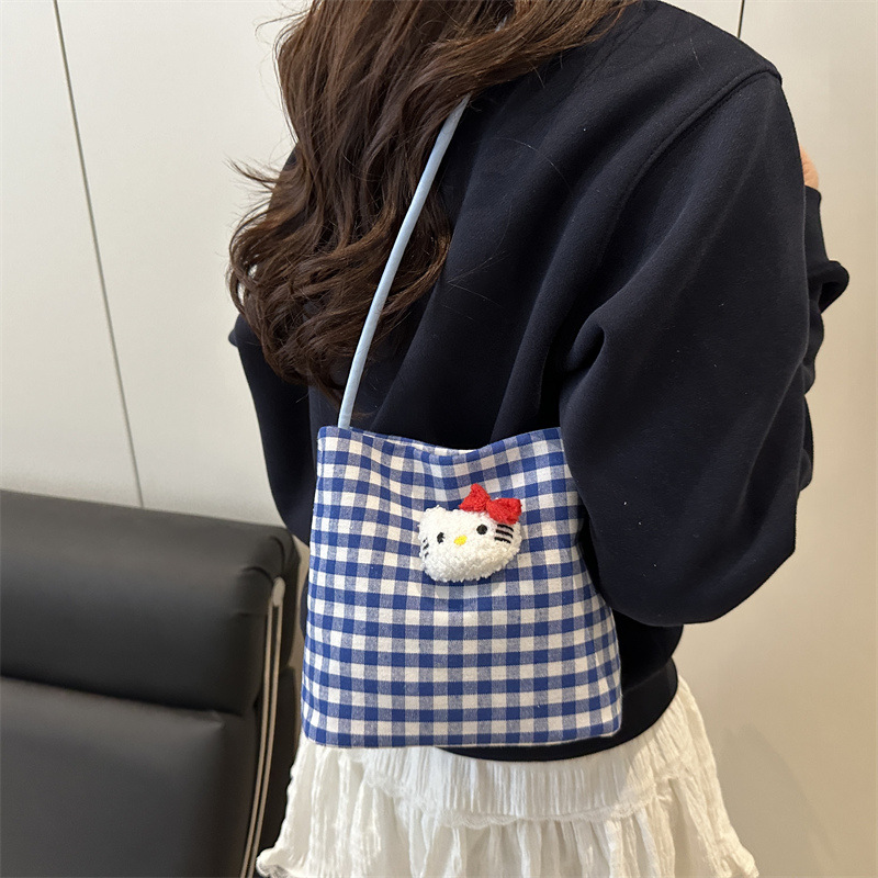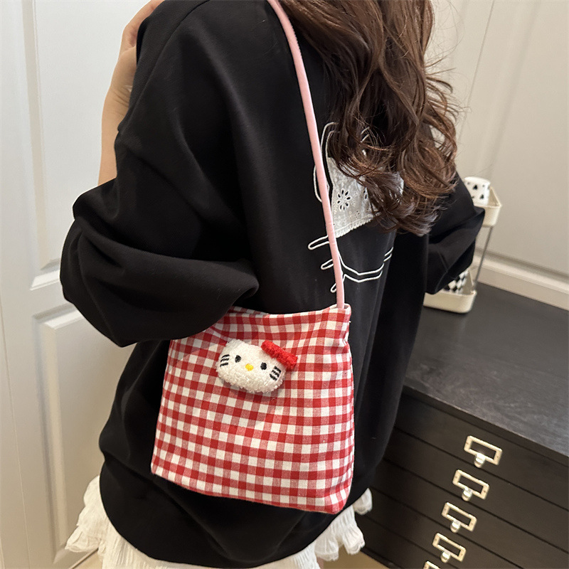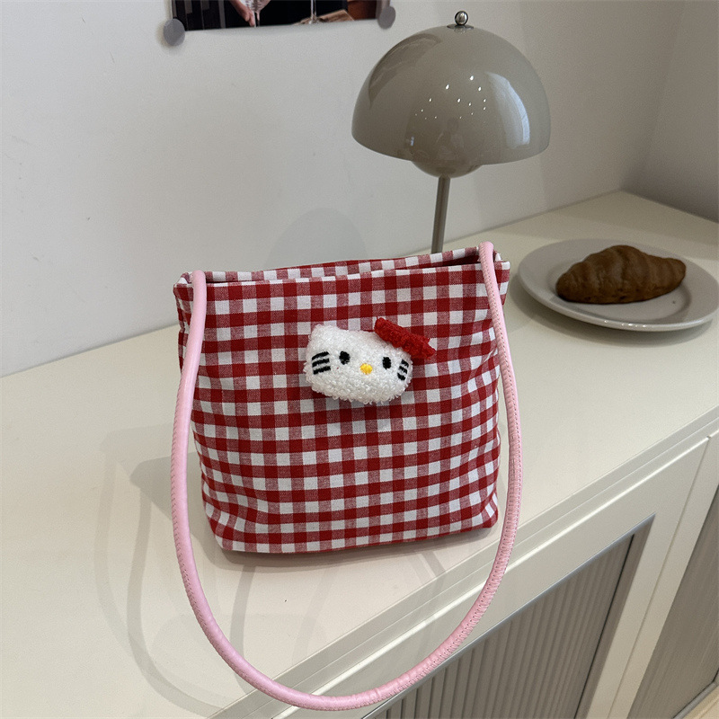 격자 무늬 새로운 만화 귀여운 숄더백 여성 패션 대학생 클래스 쇼핑 캐주얼 헬로 키티 다용도스토어 가기