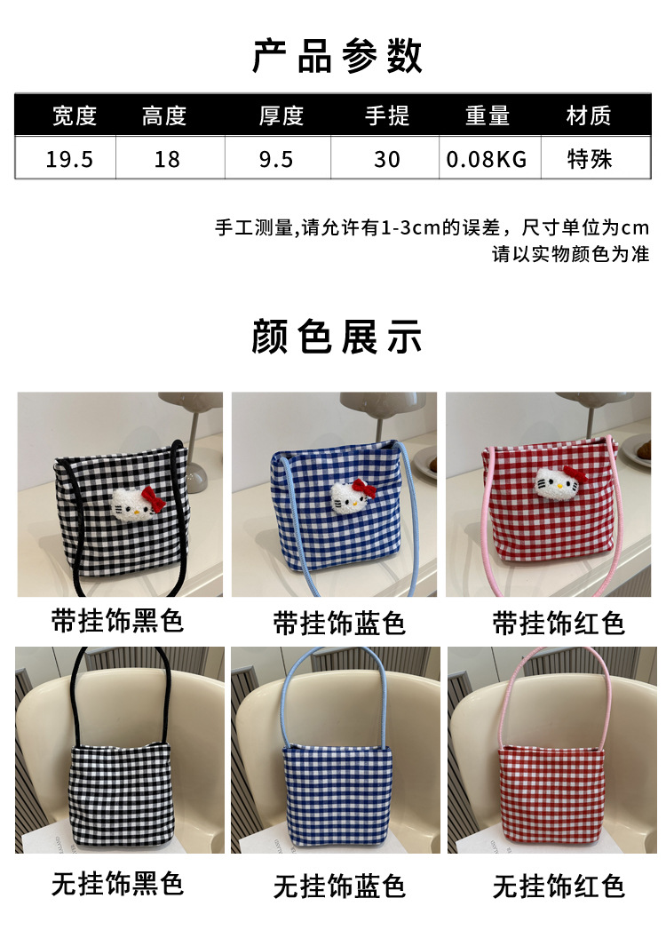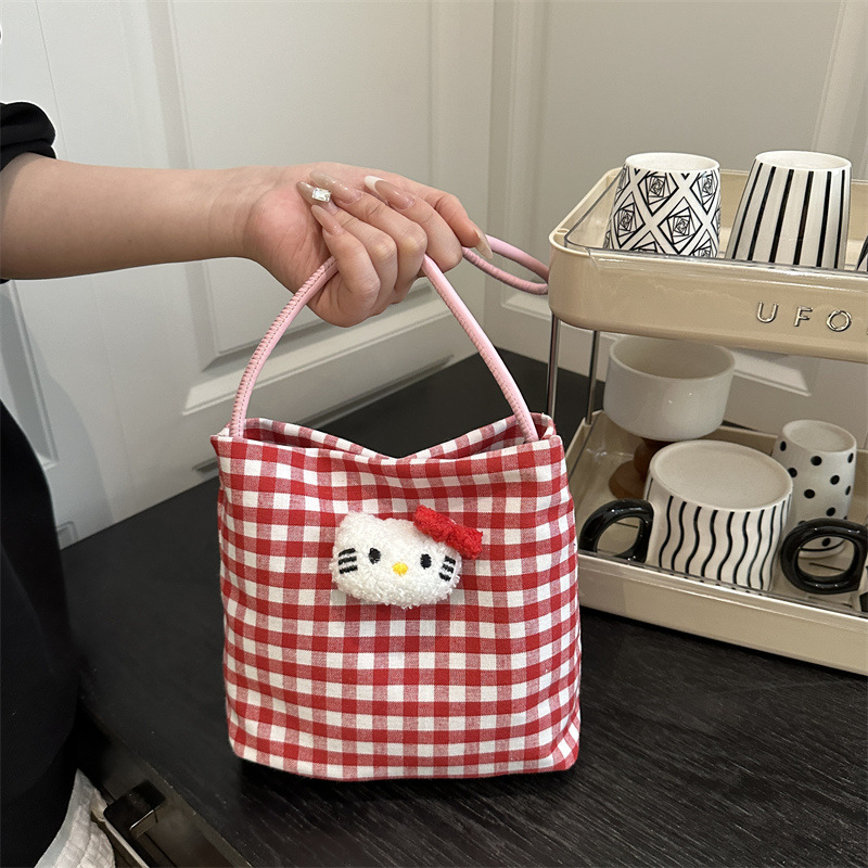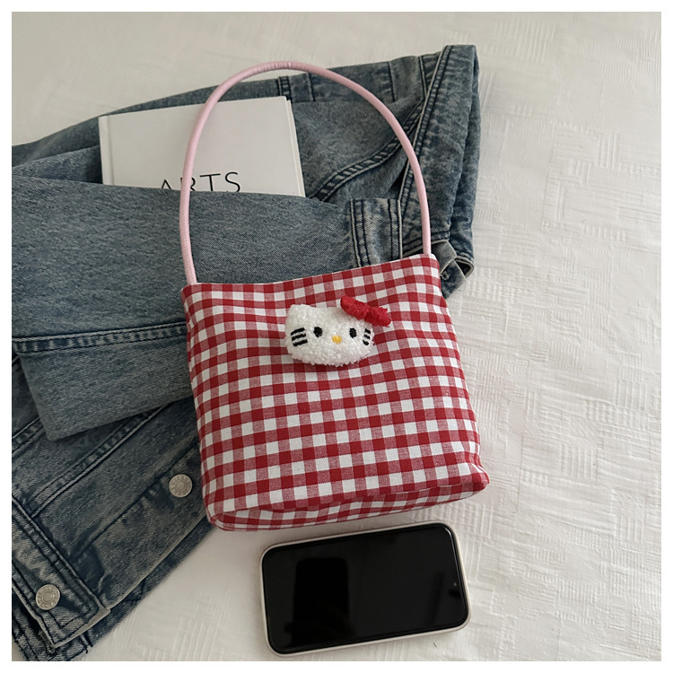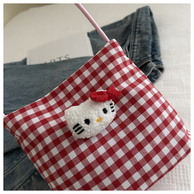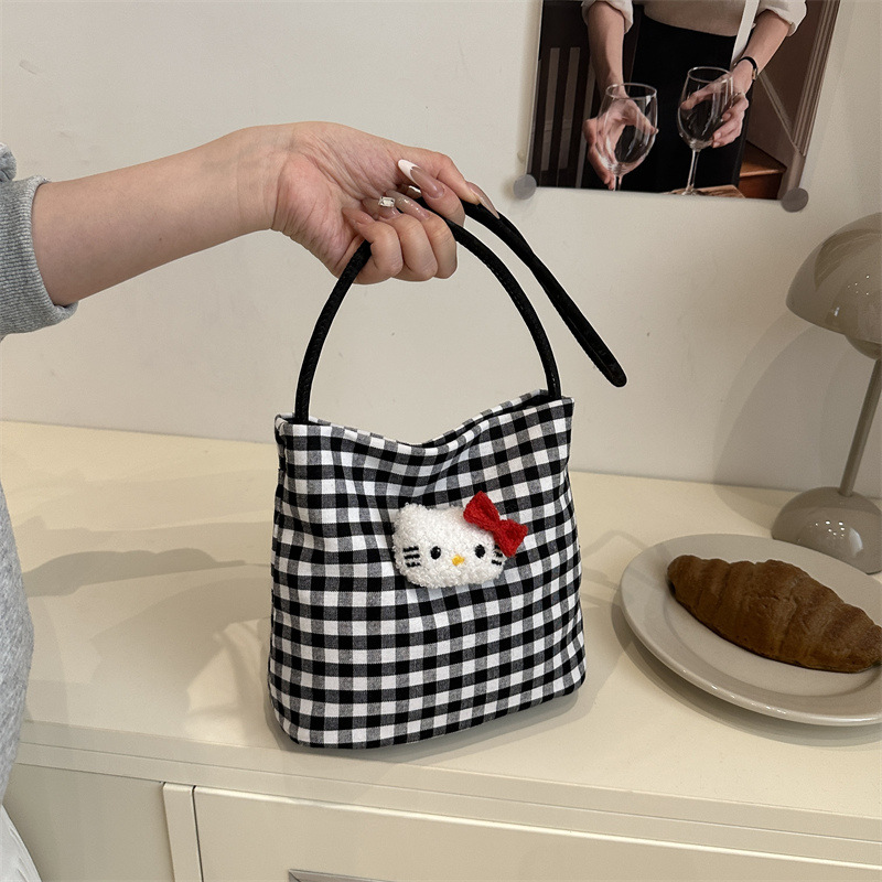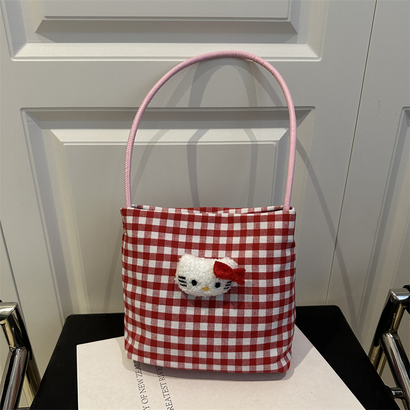 격자 무늬 새로운 만화 귀여운 숄더백 여성 패션 대학생 클래스 쇼핑 캐주얼 헬로 키티 다용도스토어 가기