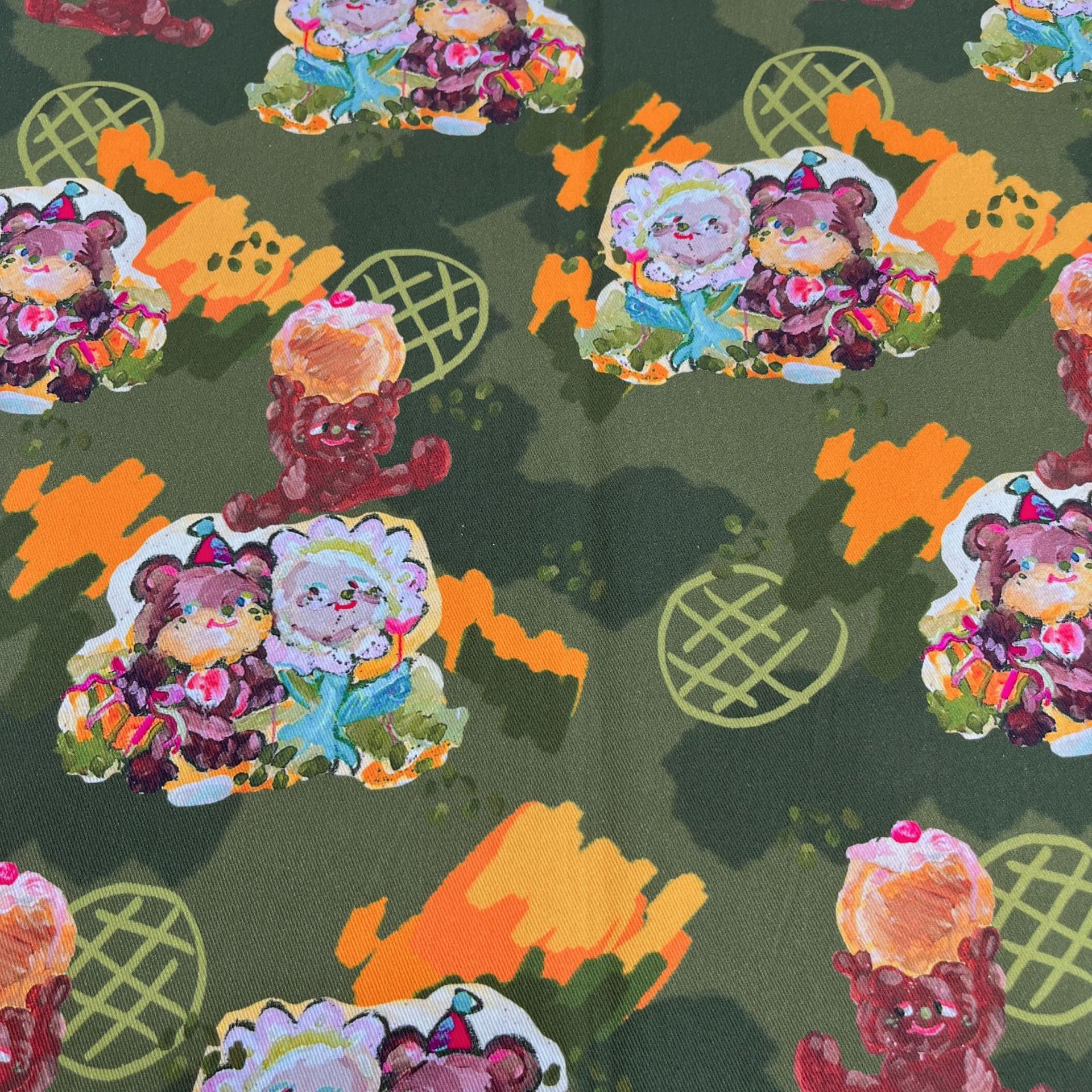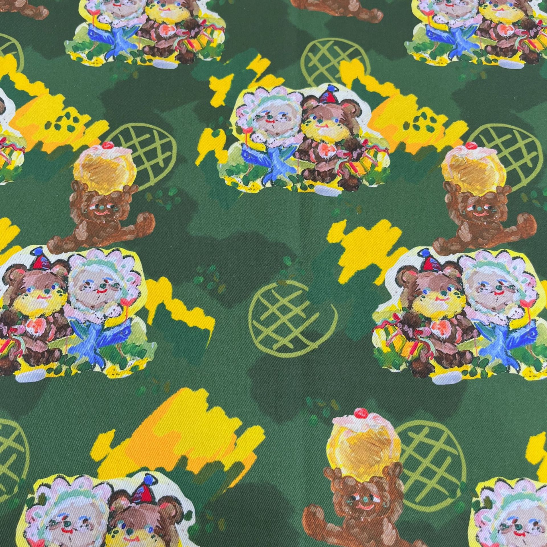 코튼 능직 디지털 만화 팬더 낙서 곰 보물 소년과 소녀 작업복 정장 재킷 신발 모자 의류 직물스토어 가기