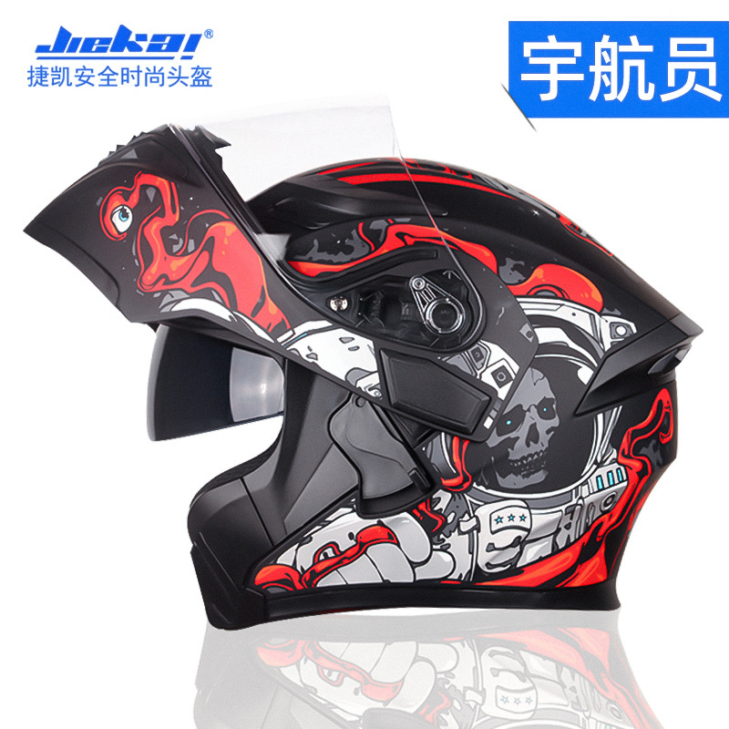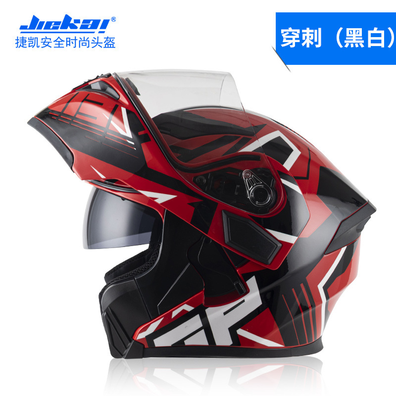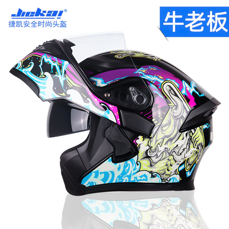 JieKai 전기 오토바이 헬멧 DOT 표준 오픈 페이스 헬멧 남성용 이중 렌즈 오토바이 헬멧 사계절 안전 헬멧스토어 가기