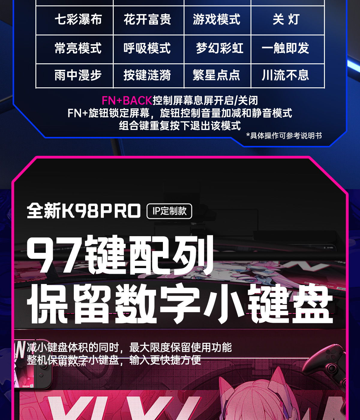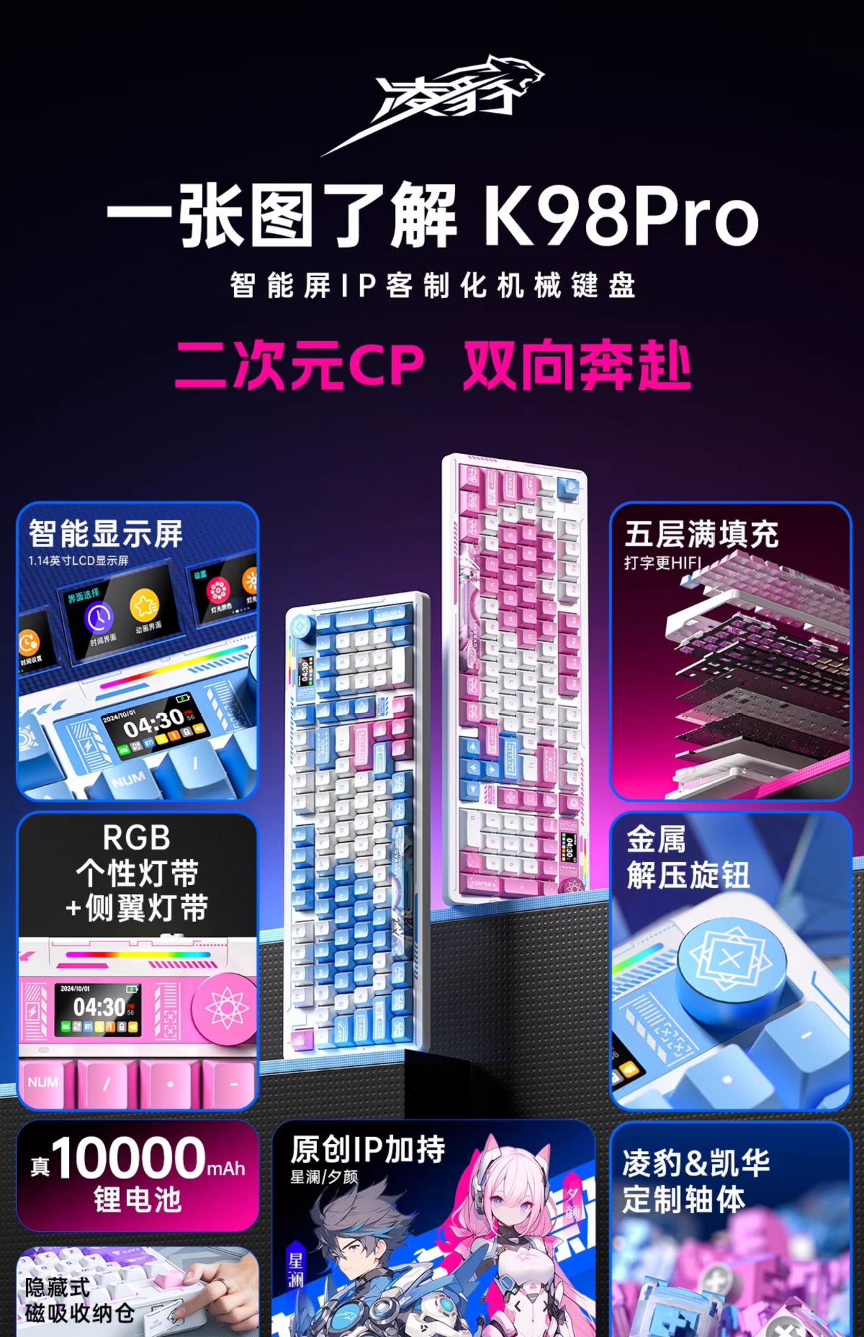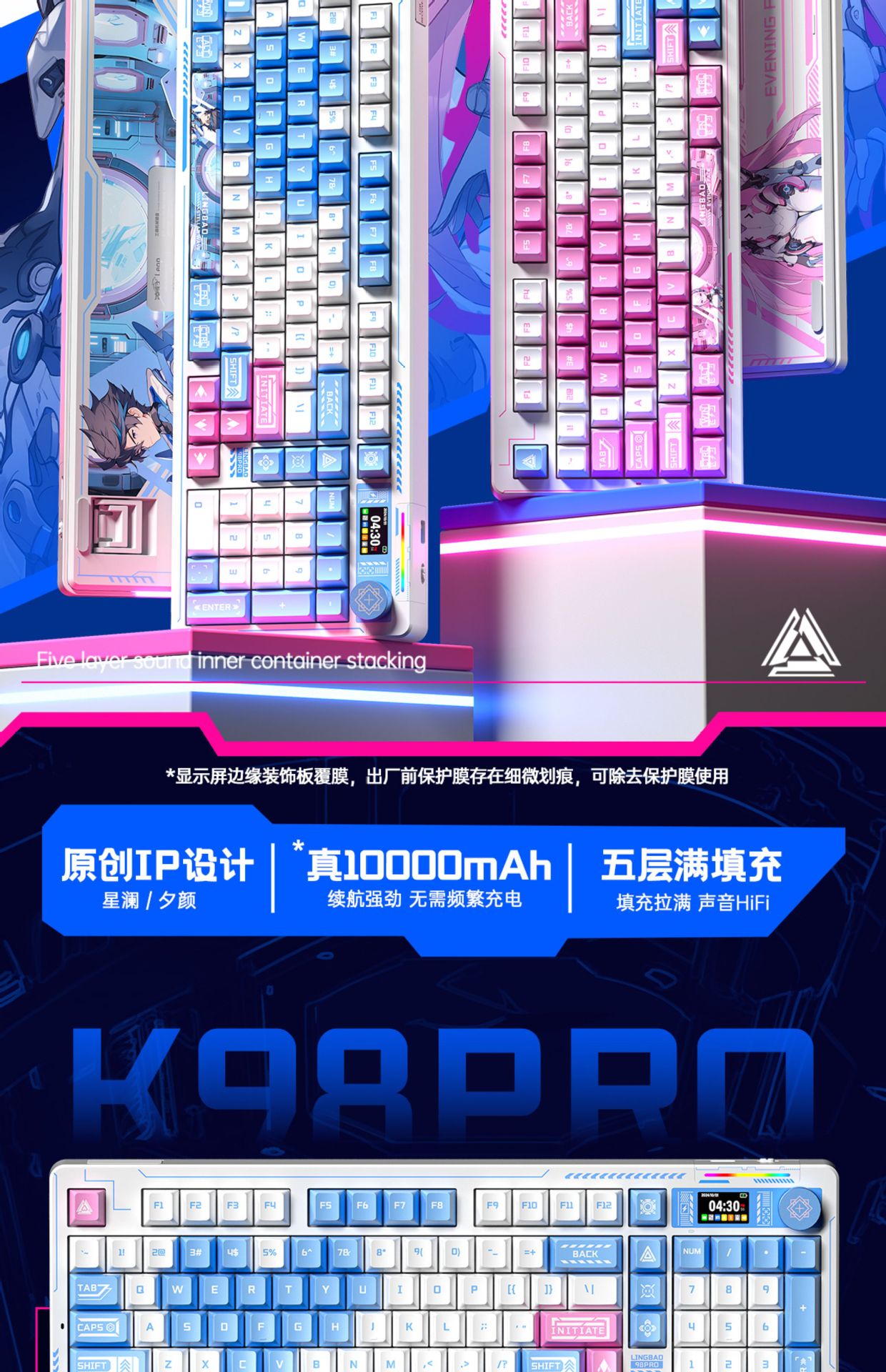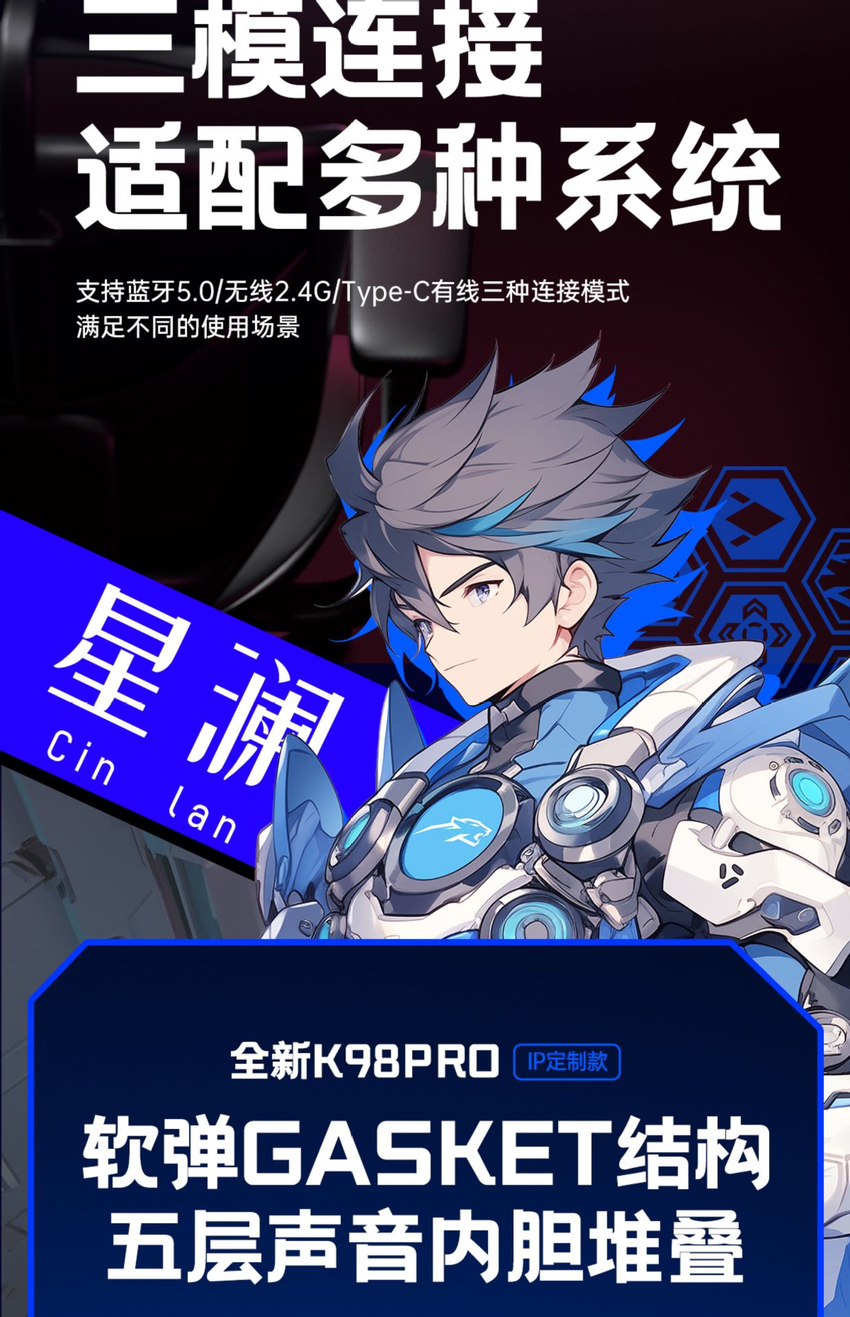 한국어 및 러시아어 Lingbao K98 기계식 키보드 측면 새겨진 무선 Bluetooth 3 모드 e-스포츠 게임 키보드 사용자 정의스토어 가기