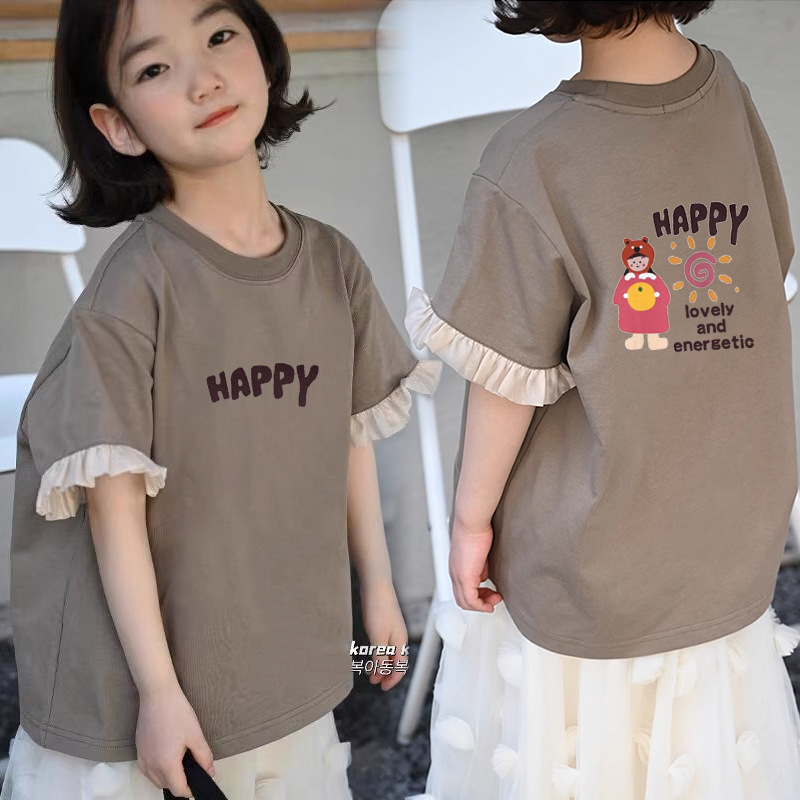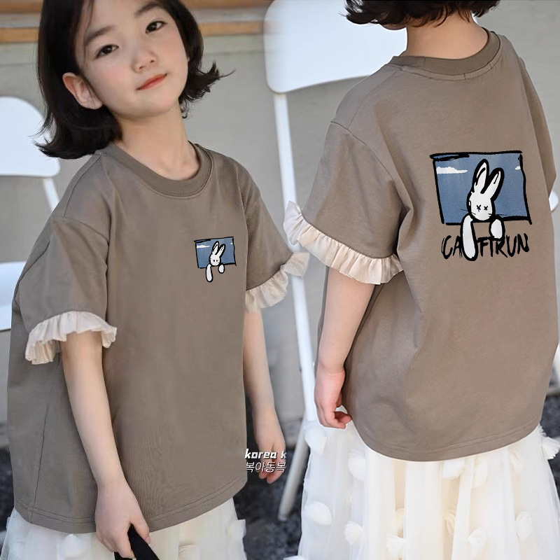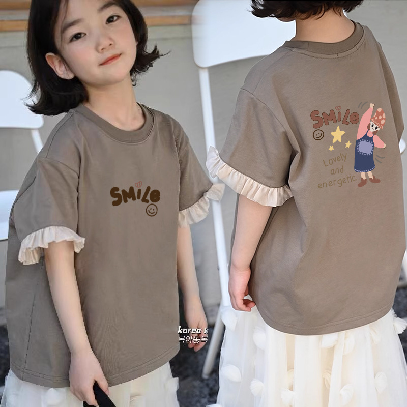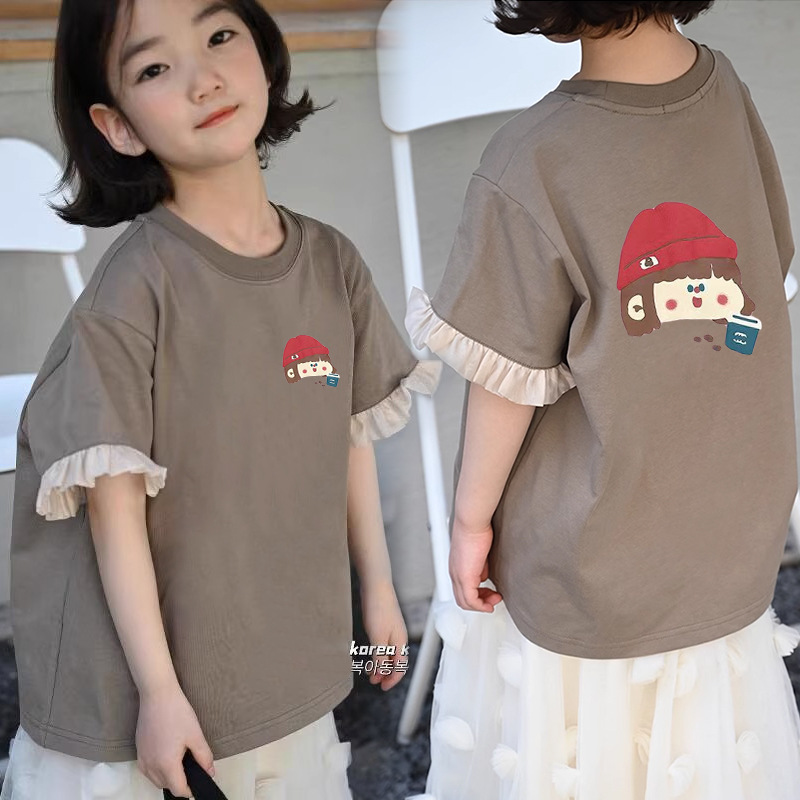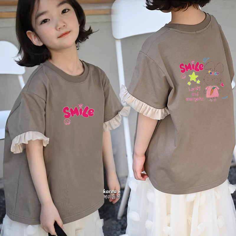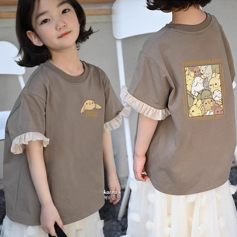 여아 캐주얼 반팔 티셔츠 여름 새 스타일 여아 상의 순면 중대형 아동 패션 다재다능한 아동복 트렌드