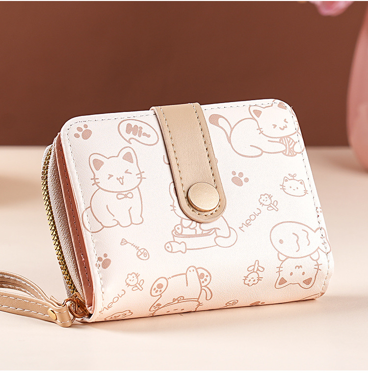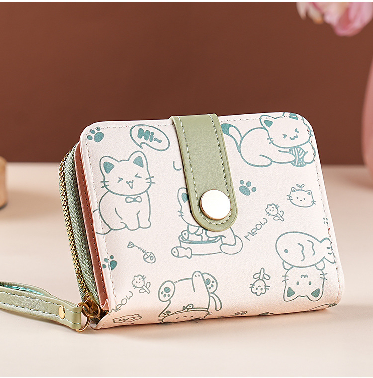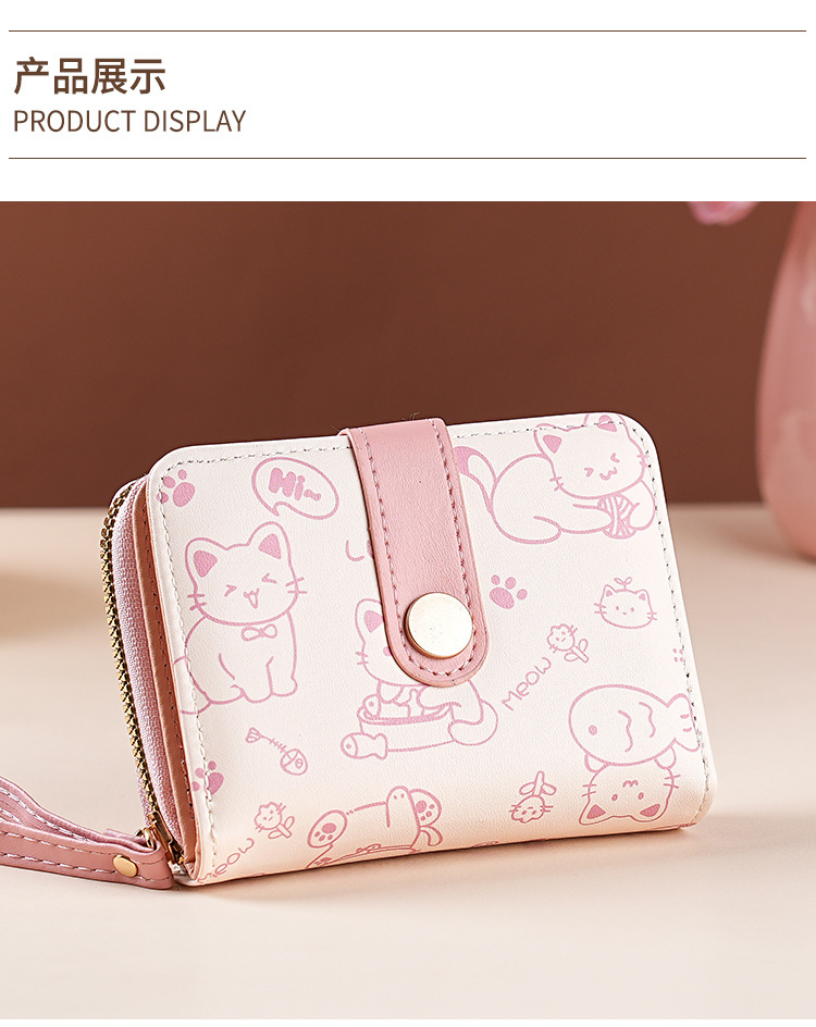 최신 인기 만화 일본 귀여운 새끼 고양이 여성 가방 학생 접이식 대용량 지퍼 지갑 핸드백 여성 가방