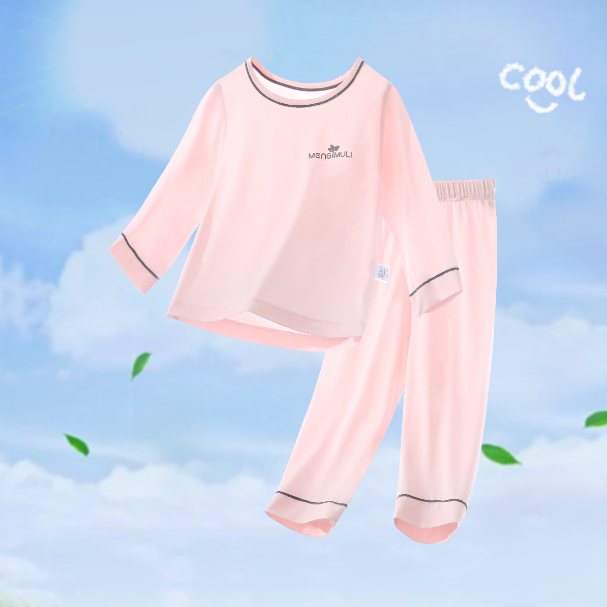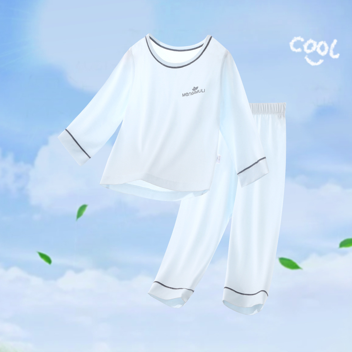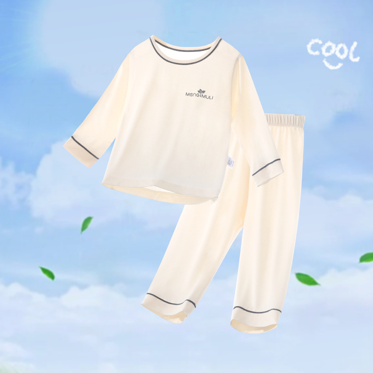 Lyocell 어린이 긴팔 잠옷 세트 여름 얇은 통기성 가정 의류 소년과 소녀 에어컨 의류 여름
