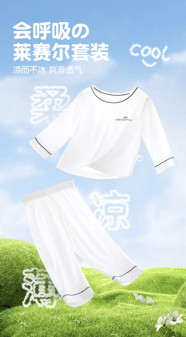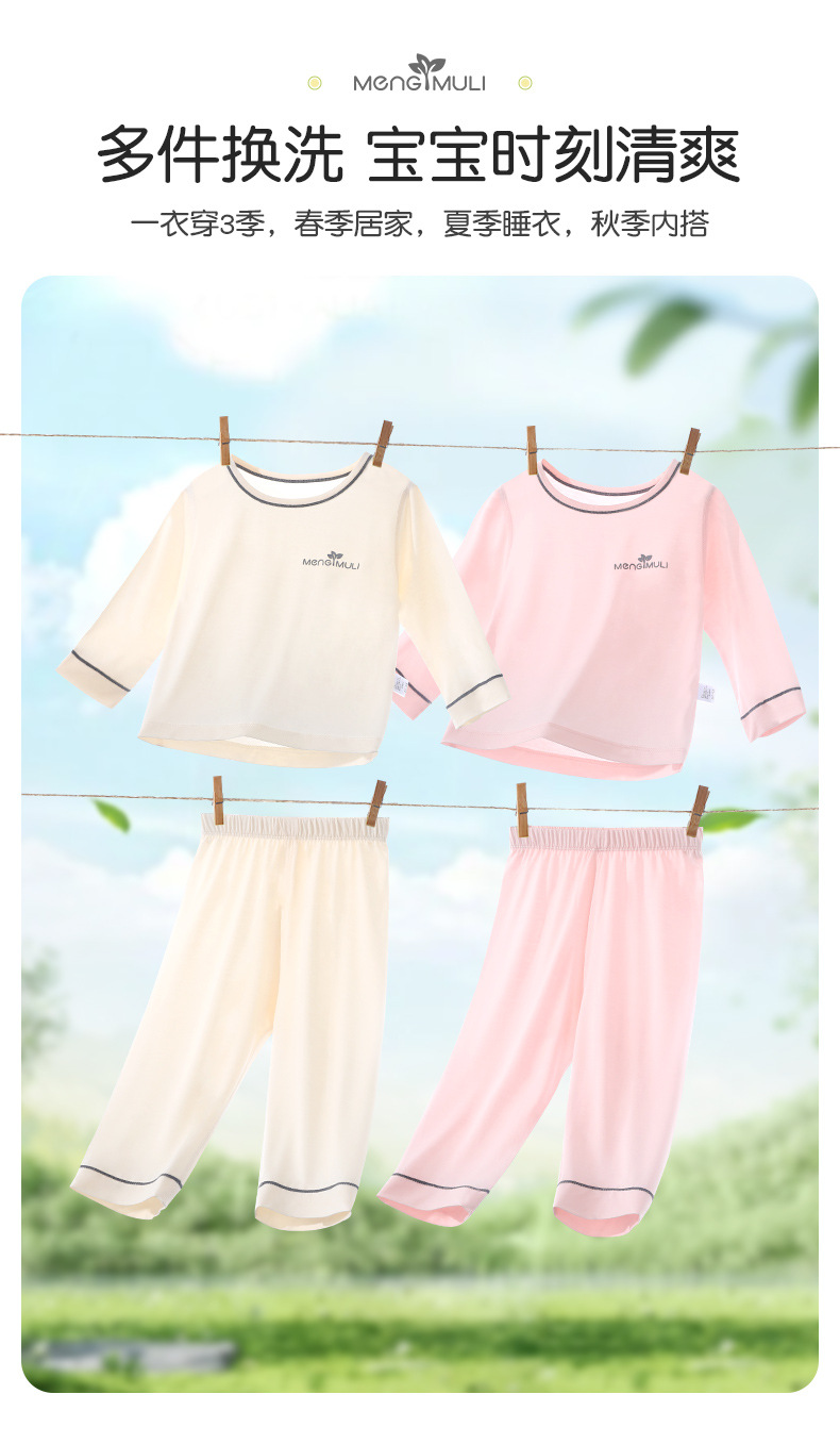 Lyocell 어린이 긴팔 잠옷 세트 여름 얇은 통기성 가정 의류 소년과 소녀 에어컨 의류 여름스토어 가기