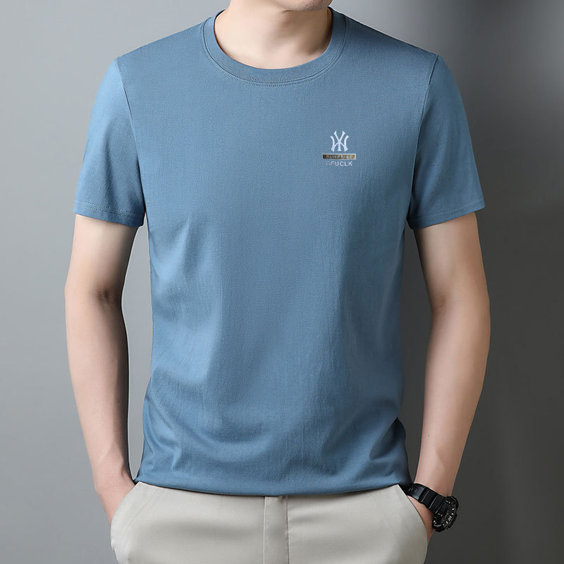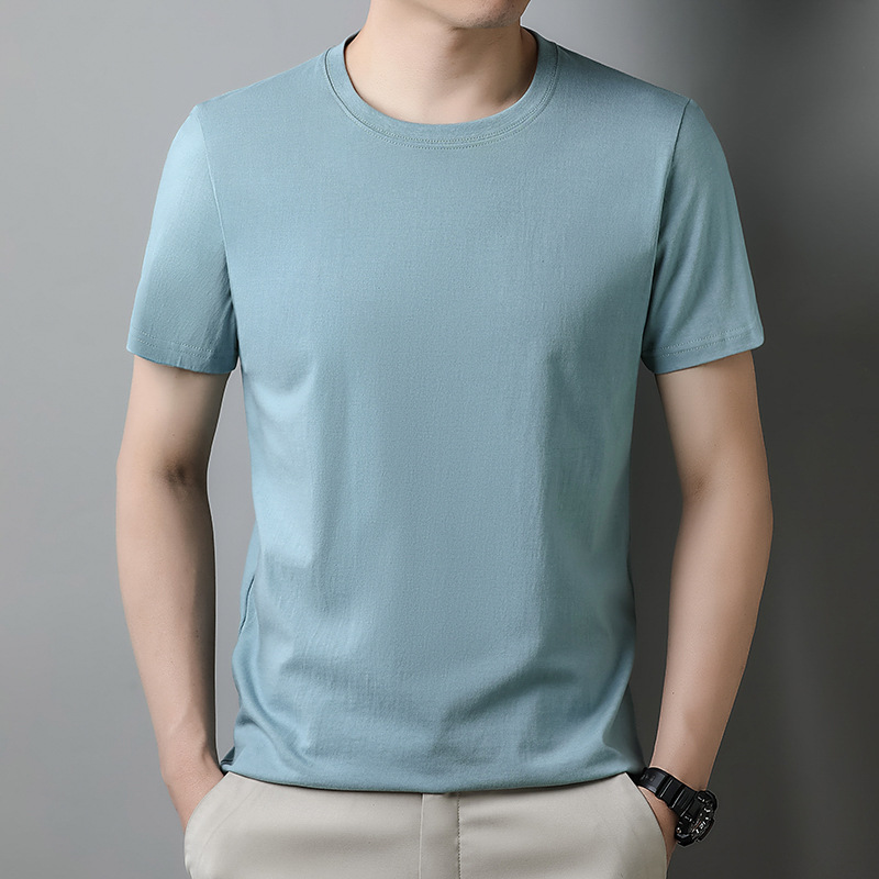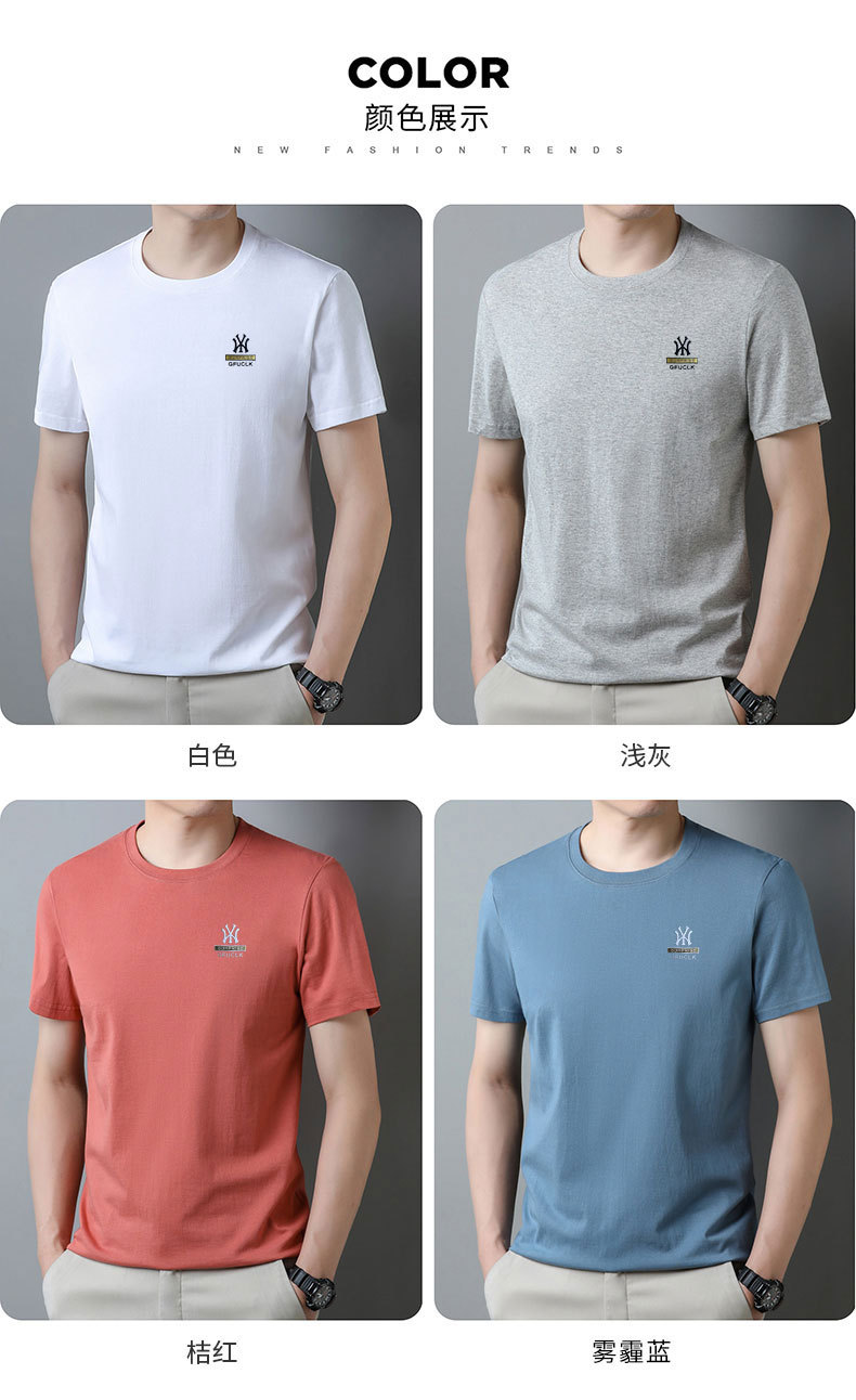 100% 코튼 반팔 티셔츠 남성 여름 솔리드 컬러 캐주얼 라운드 넥 셔츠 남성용 얇은 루즈 탑 남성용스토어 가기