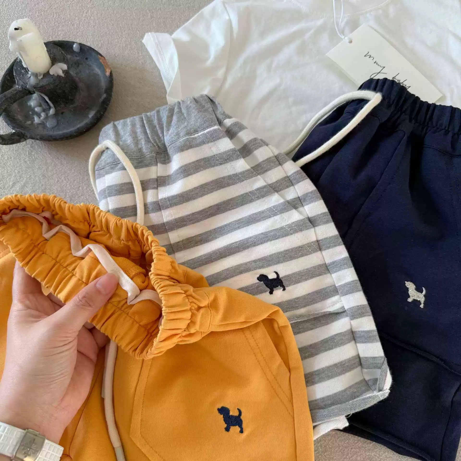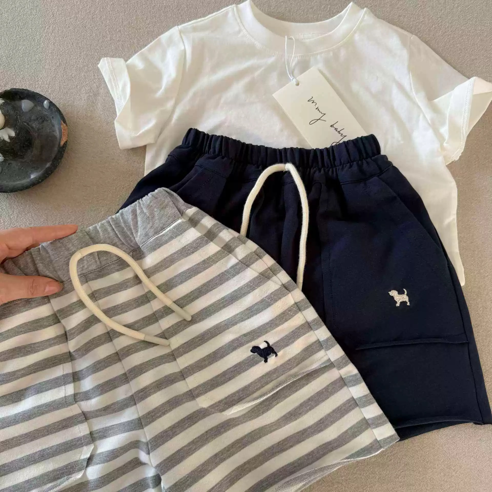 아동용 반바지 2025 여름 스타일 일본 만화 줄무늬 캐주얼 바지 소년 소녀용, 유아 및 어린이용 세련된 5부 바지스토어 가기