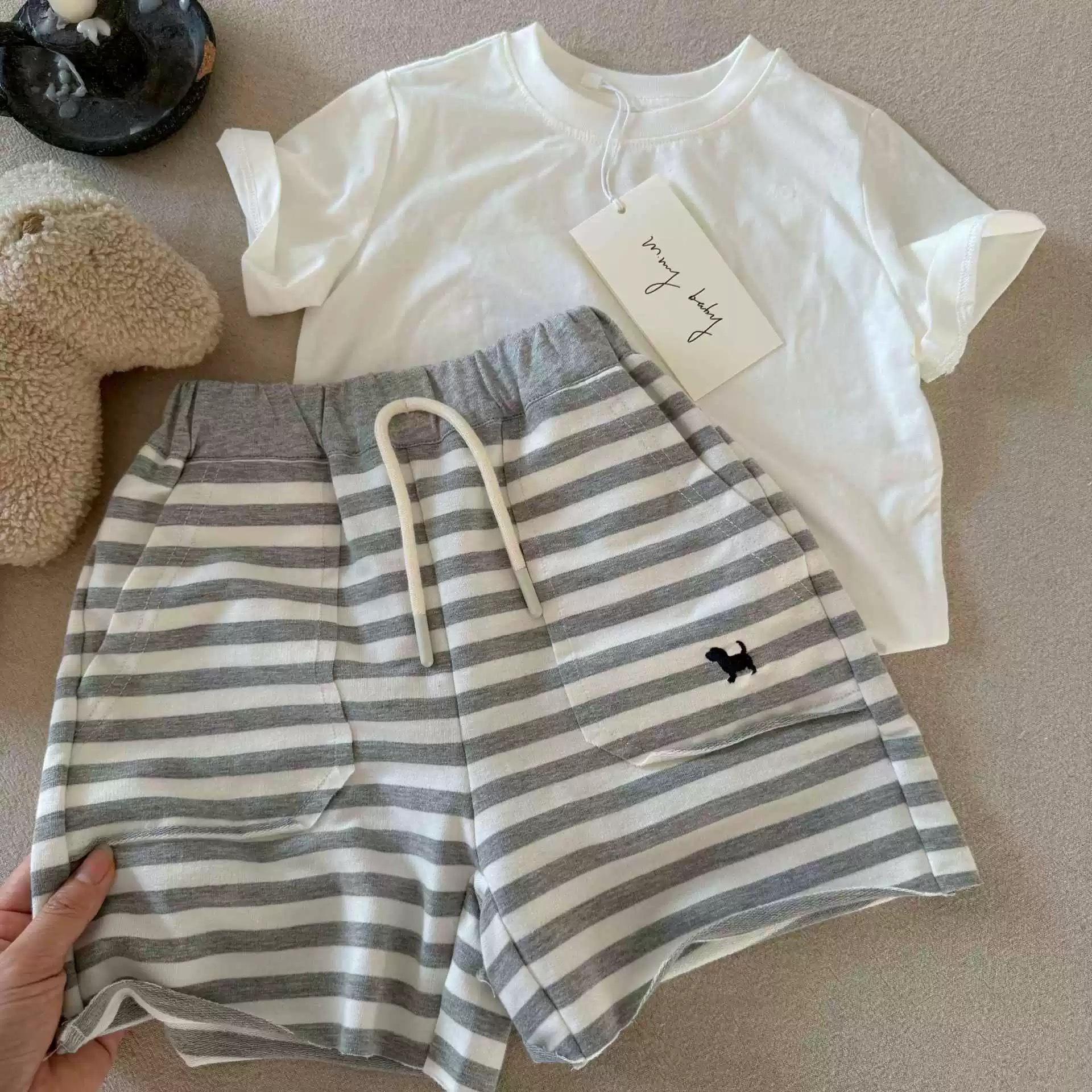 아동용 반바지 2025 여름 스타일 일본 만화 줄무늬 캐주얼 바지 소년 소녀용, 유아 및 어린이용 세련된 5부 바지