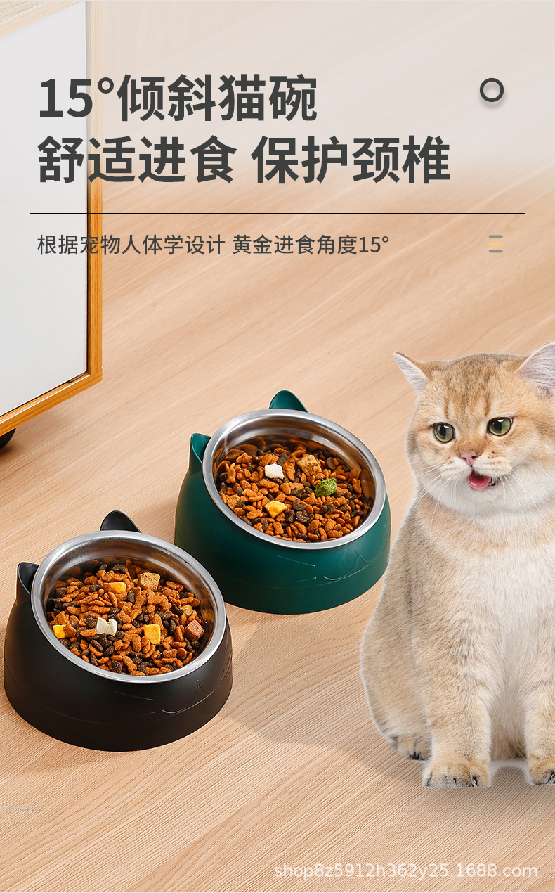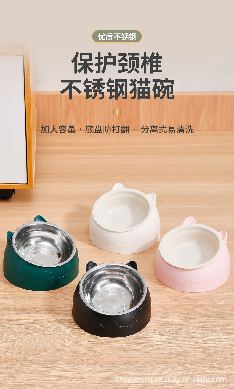 인터넷 연예인 스테인레스 고양이 그릇, 고양이 귀 경추 보호 그릇, 애완동물 밥 그릇, 강아지 그릇, 고양이 용품스토어 가기