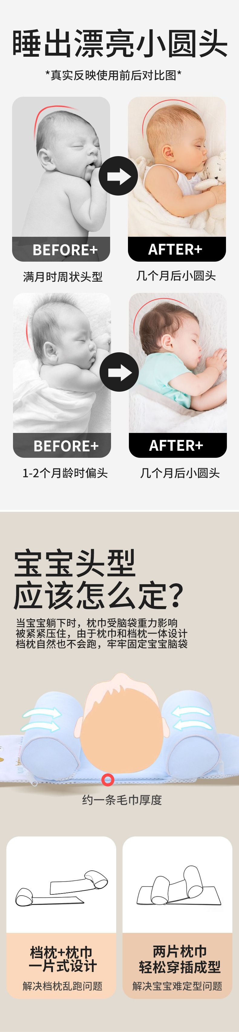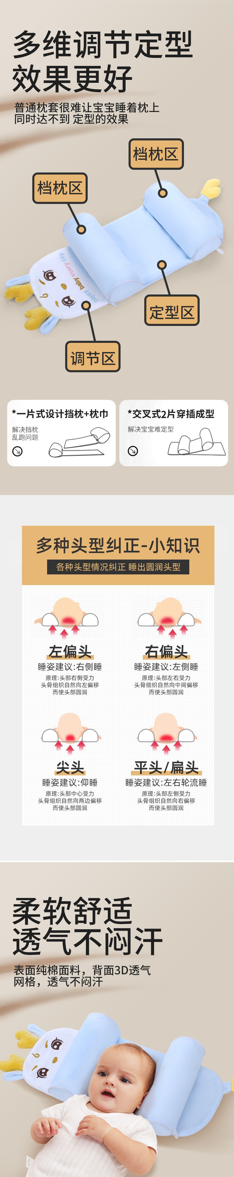샤오미 스타일링 베개 0~6개월 유아용 베개 신생아 교정 및 편심 방지 유아용 탈부착 및 세탁 가능한 베개 커버스토어 가기