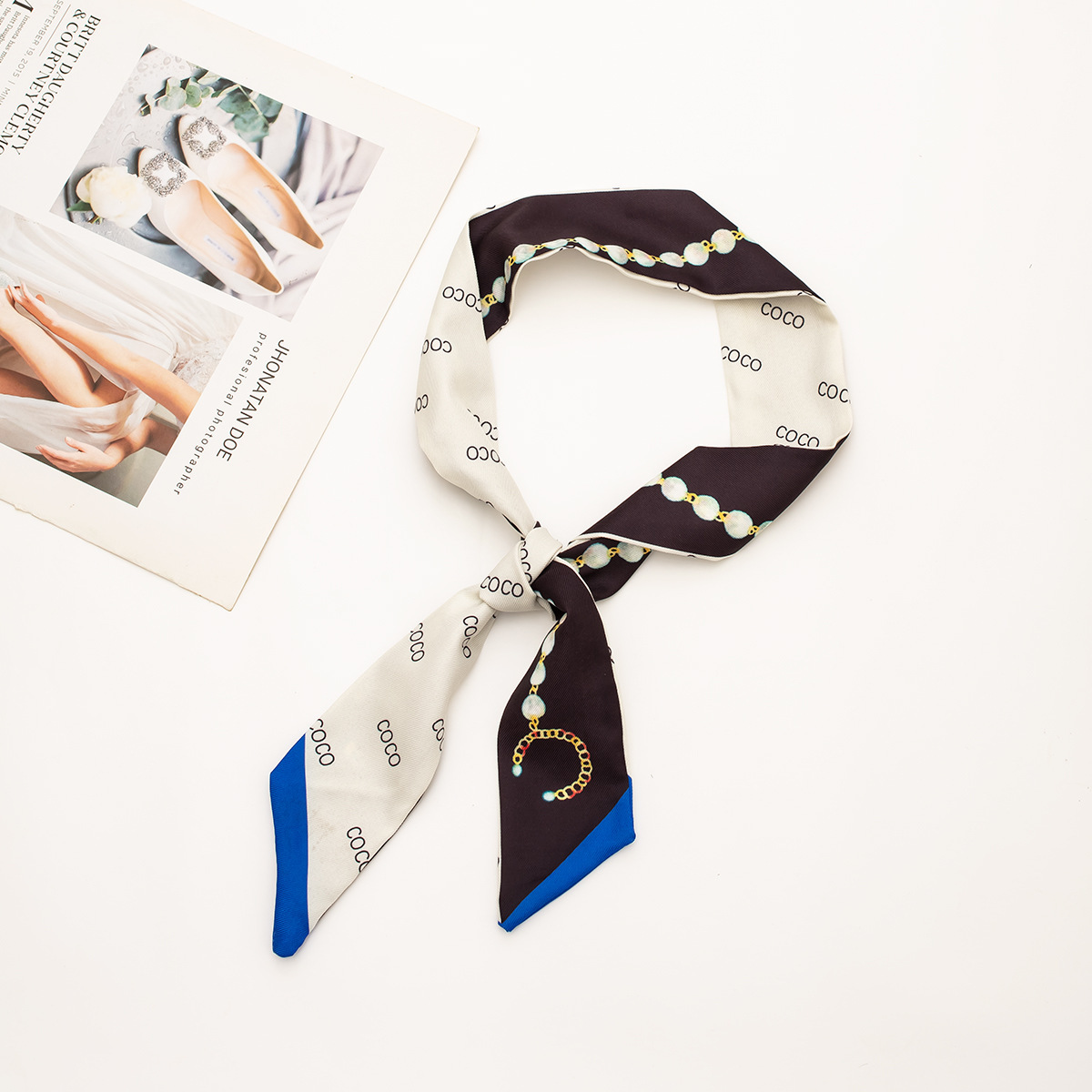 • 【체크무늬 시리즈●카키색 글자] 실크 스카프 1개