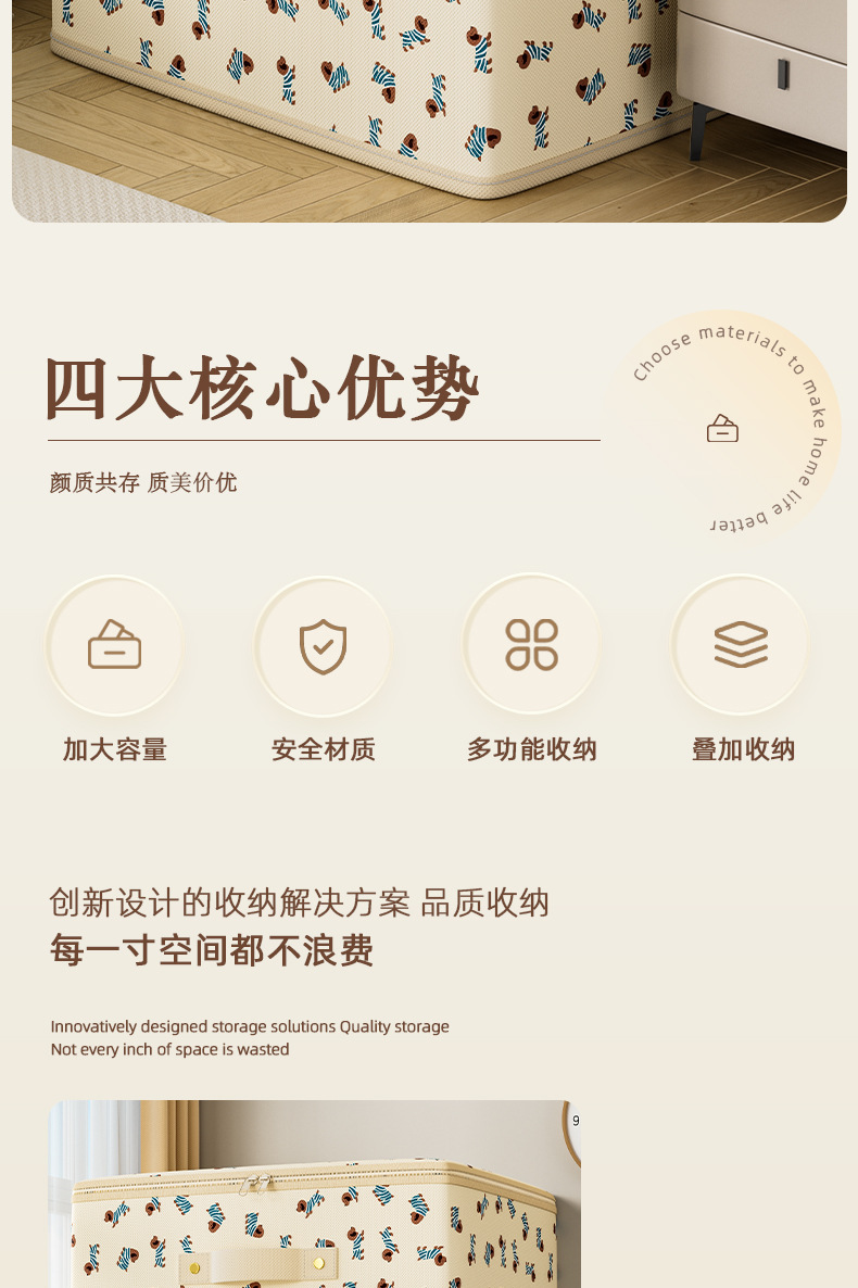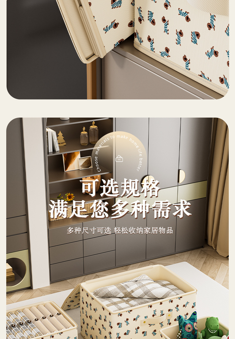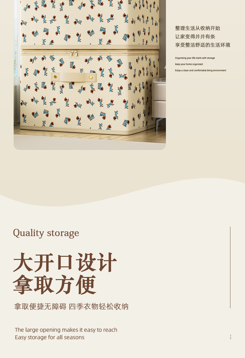부직포 만화 지퍼 보관 상자 의류 보관 상자 접이식 가정용 옷장 대용량 보관 상자스토어 가기