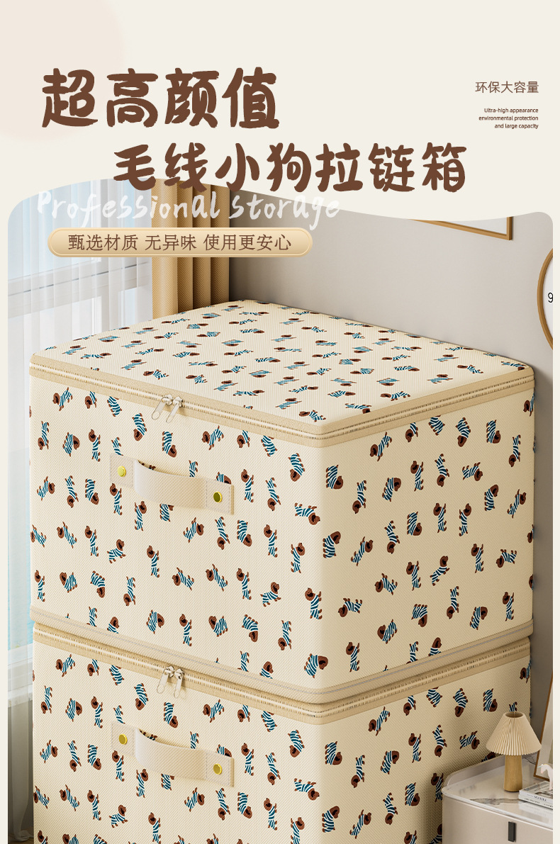 부직포 만화 지퍼 보관 상자 의류 보관 상자 접이식 가정용 옷장 대용량 보관 상자