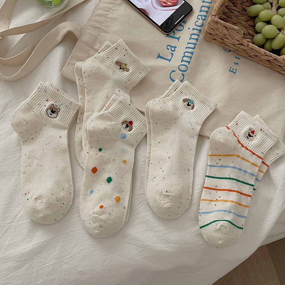 자수 강아지 아이디어 얀 양말 여성 양말면 양말 메쉬 통기성 트렌드 여름 얇은 만화 짧은 양말