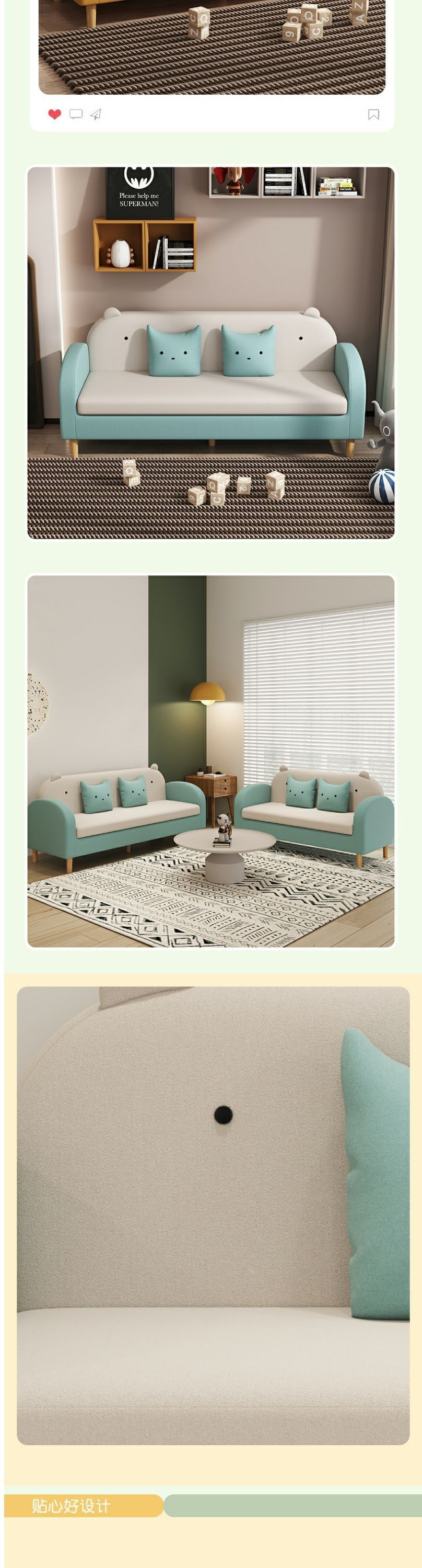 작은 아파트 귀여운 패브릭 탈부착 및 세탁 가능한 작은 거실 침실 서재 임대 주택 작은 2인용 및 3인용 레저 소파스토어 가기