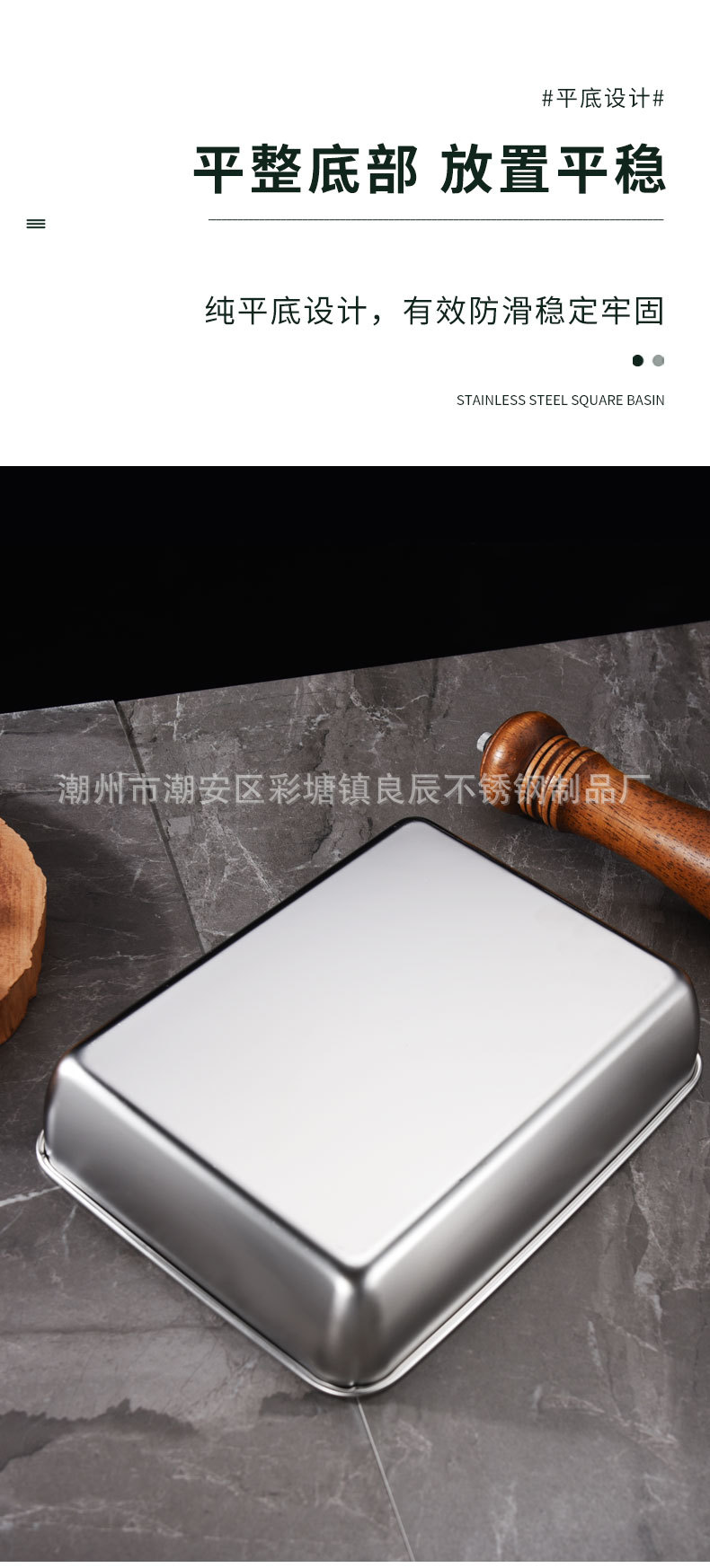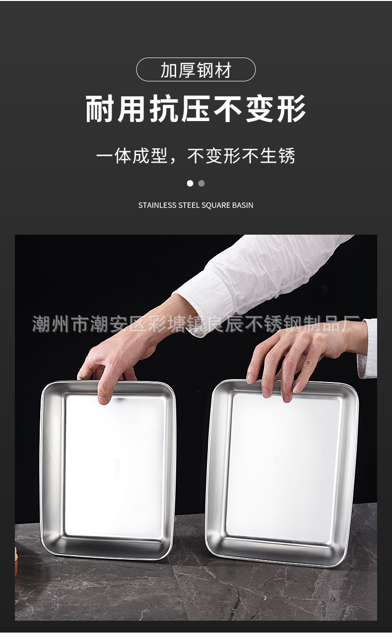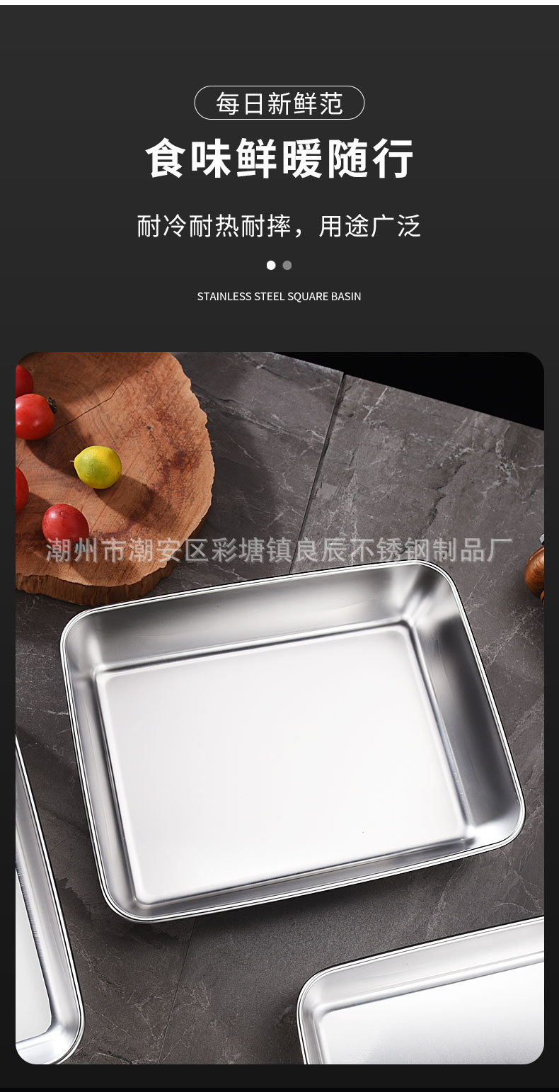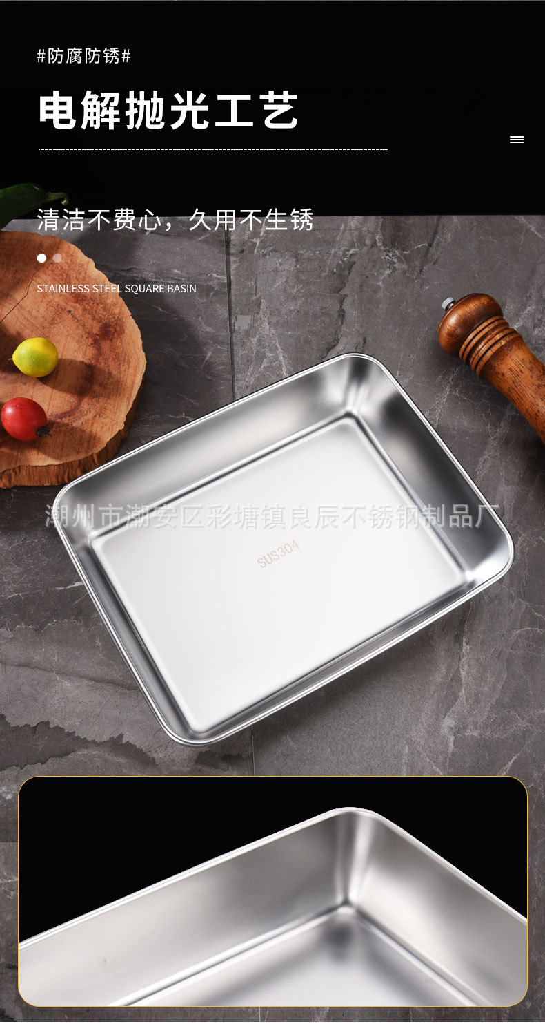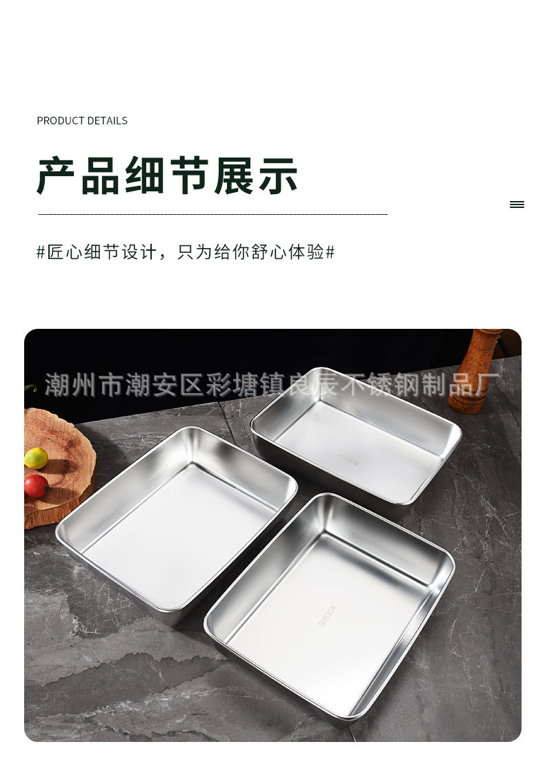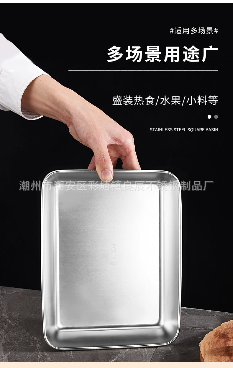 공장 직접 판매 국경 간 스테인레스 스틸 사각형 접시 티라미수 식품 등급 트레이 가정용 수건 트레이 밀봉 크리스퍼스토어 가기