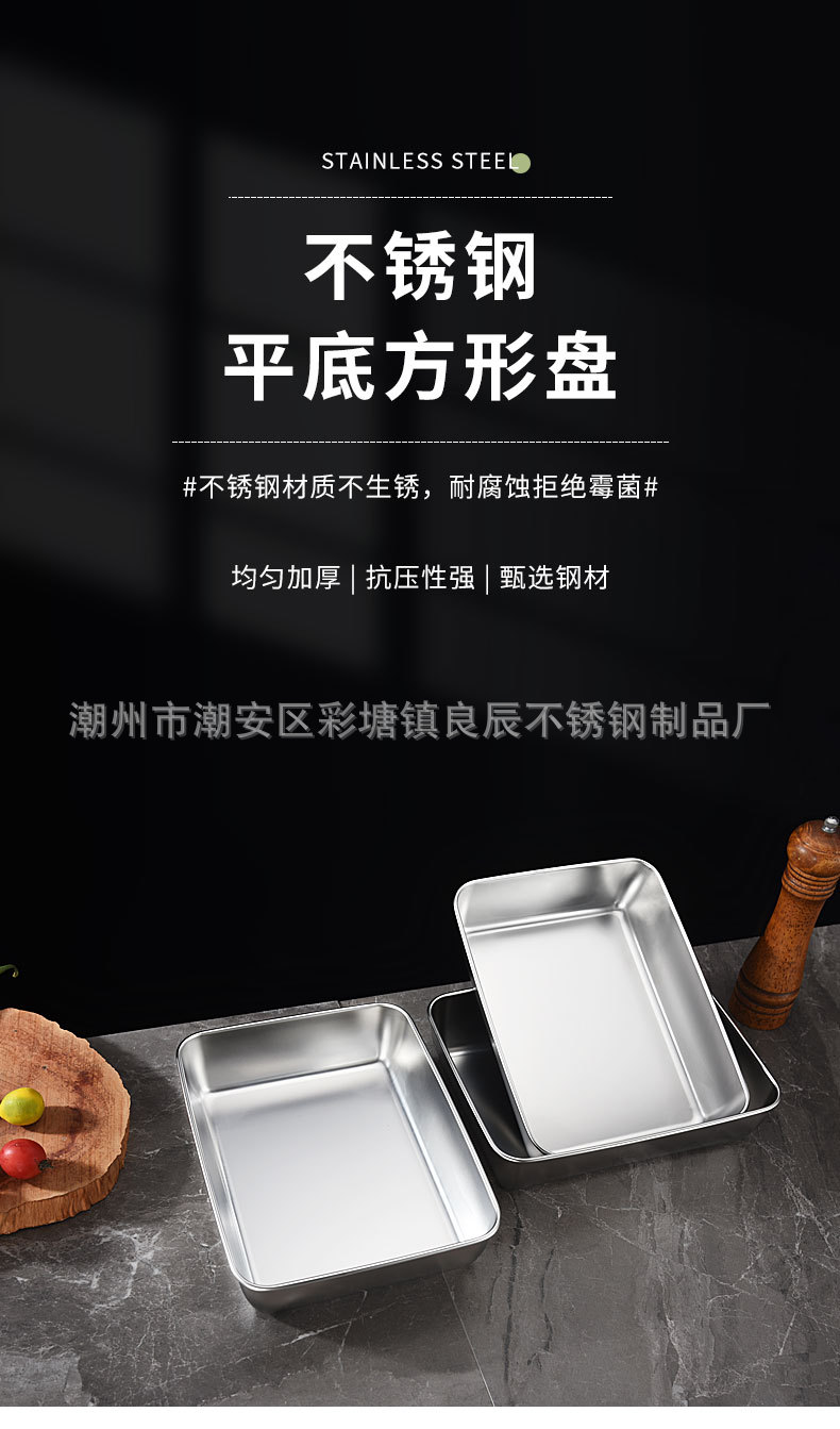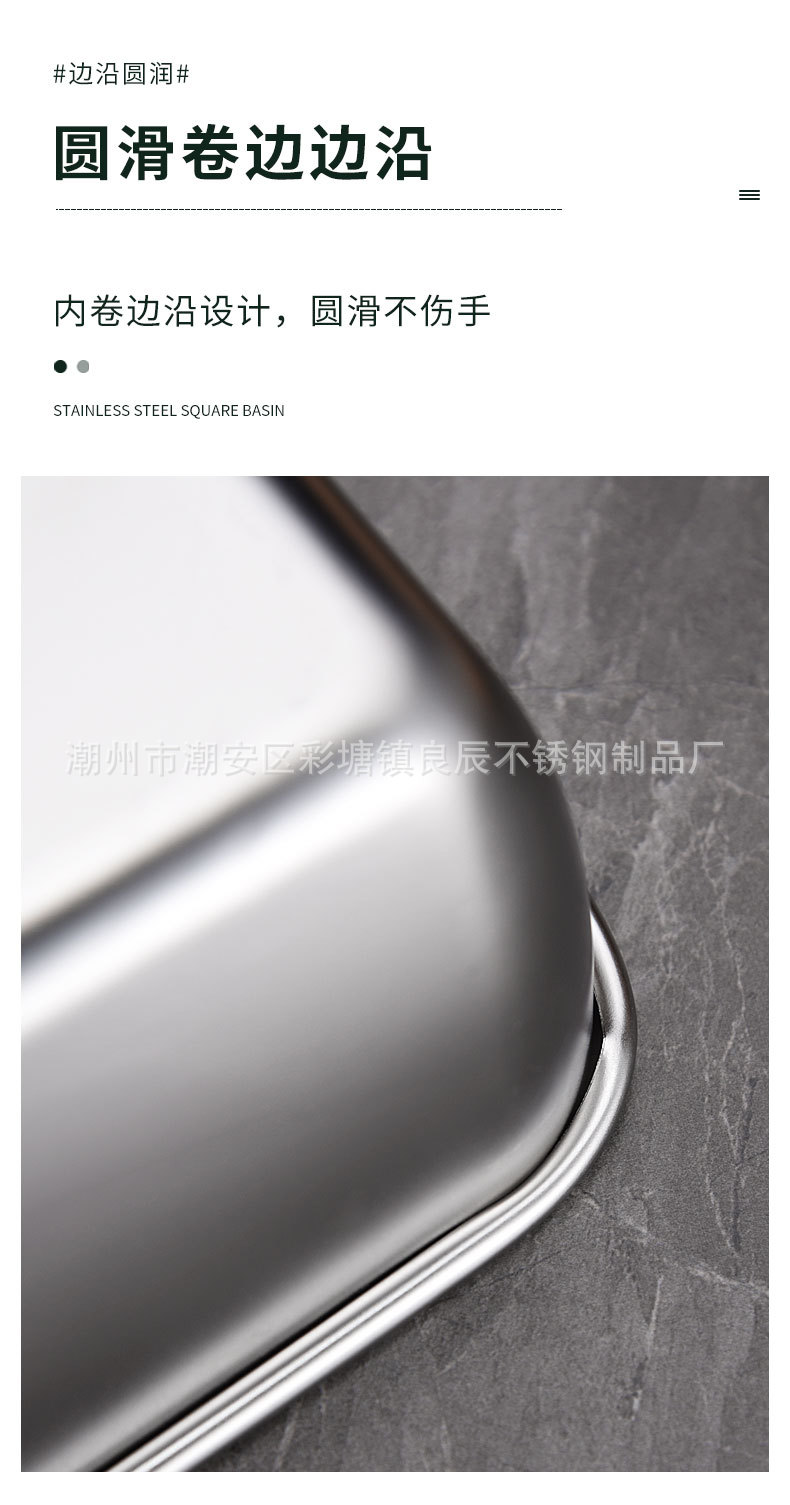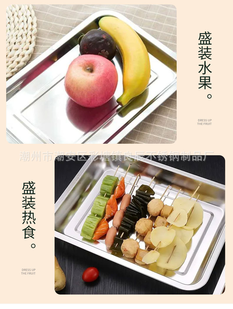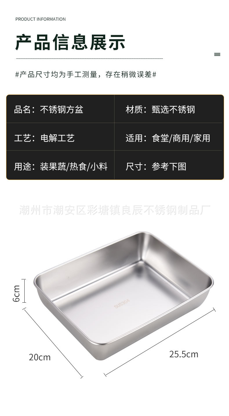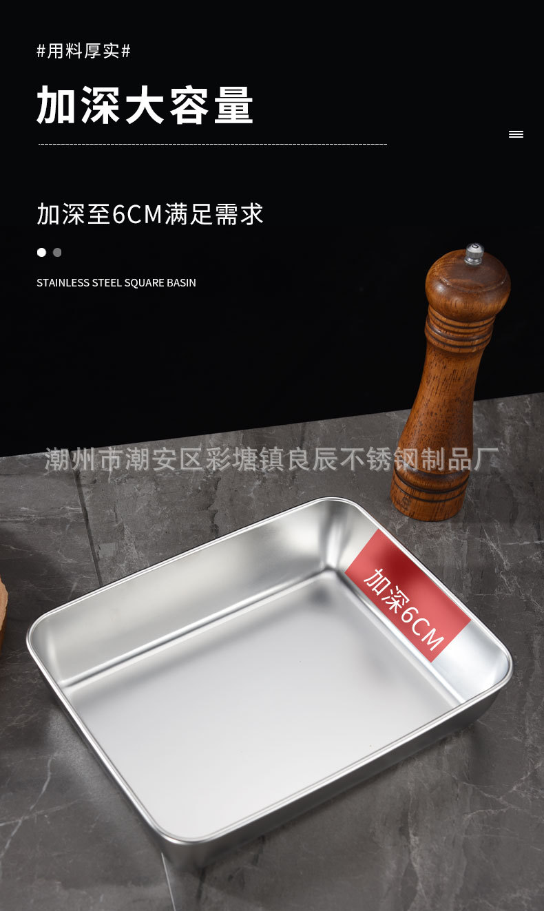 공장 직접 판매 국경 간 스테인레스 스틸 사각형 접시 티라미수 식품 등급 트레이 가정용 수건 트레이 밀봉 크리스퍼스토어 가기