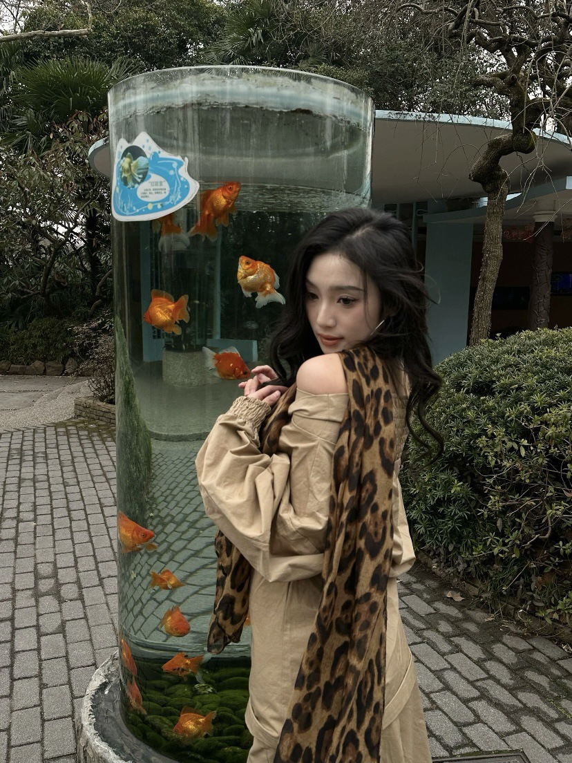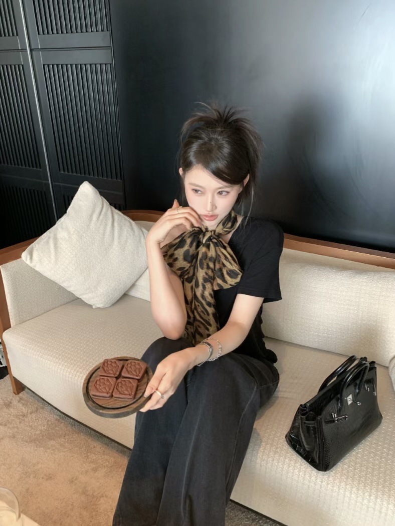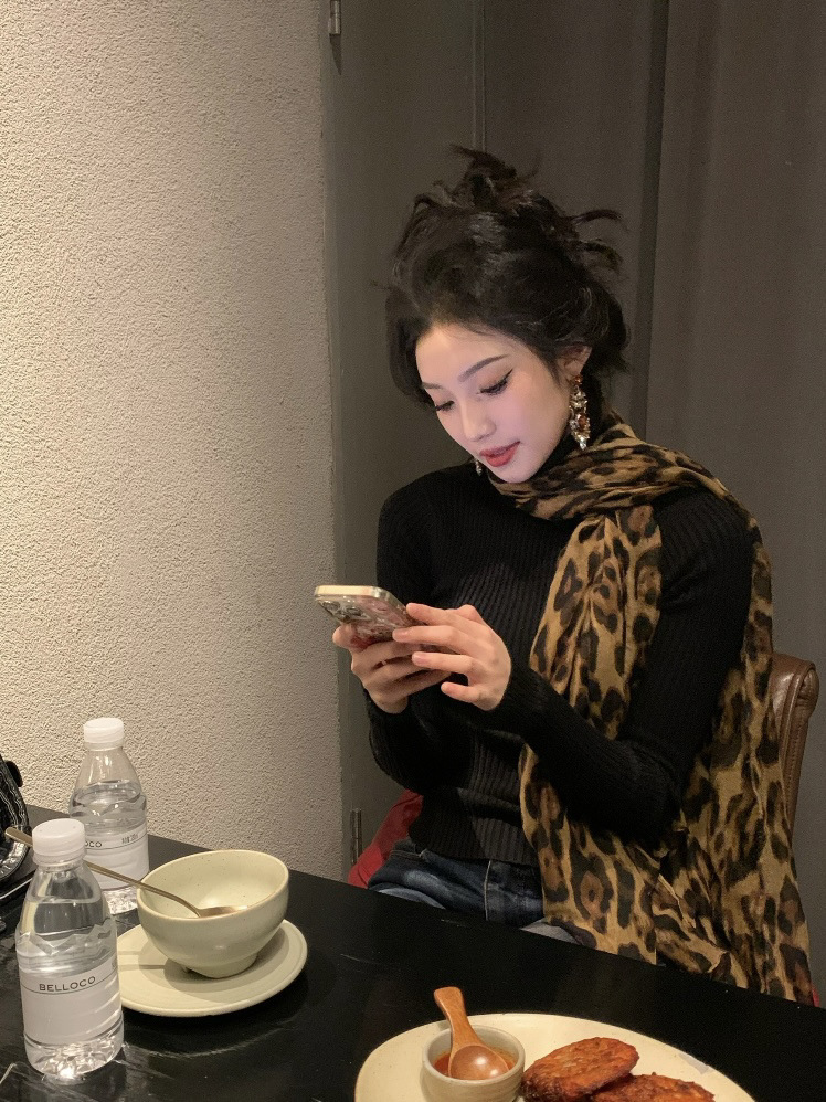레트로한 홍콩 스타일 분위기의 섹시한 레오파드 프린트 실크 스카프 양면 프린트 머리 스카프 목도리 숄스토어 가기
