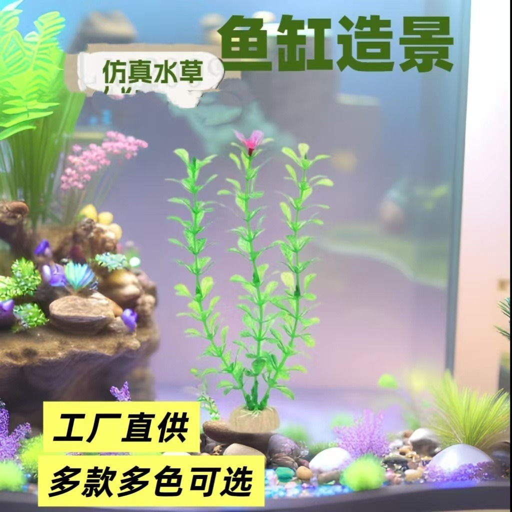 공장 직접 판매 수조 조경 장식 시뮬레이션 식물 세트 수생 식물 플라스틱 수생 식물 실크 꽃 20cm 장식품스토어 가기