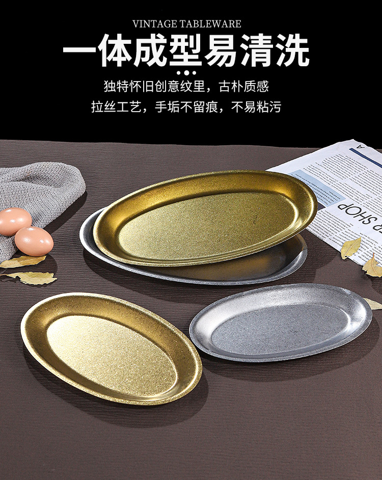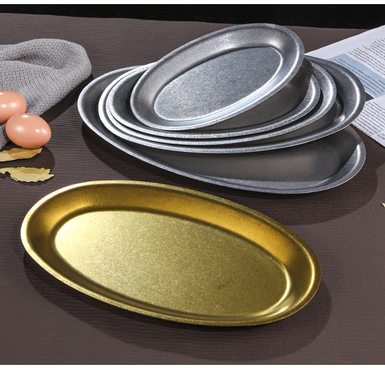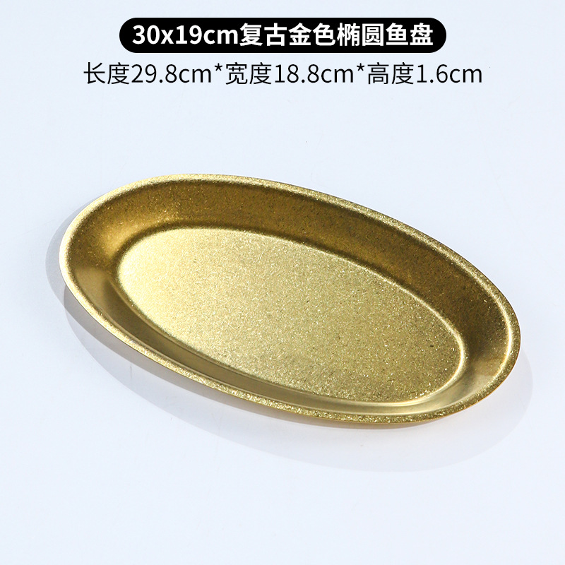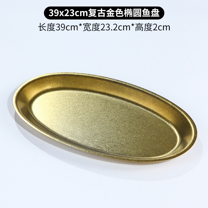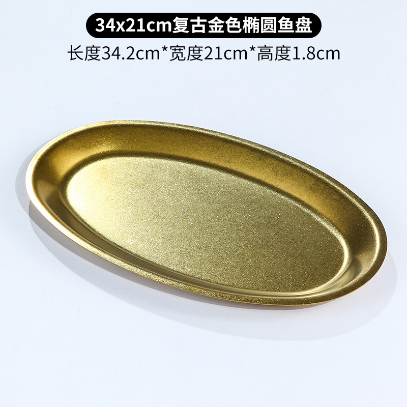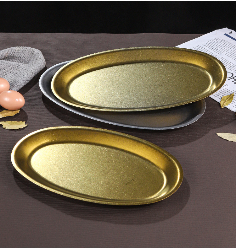 레트로 골드 스테인레스 스틸 생선 접시 타원형 접시 생선 찜 접시 골드 크리 에이 티브 달걀 모양의 접시 바베큐 접시 트레이