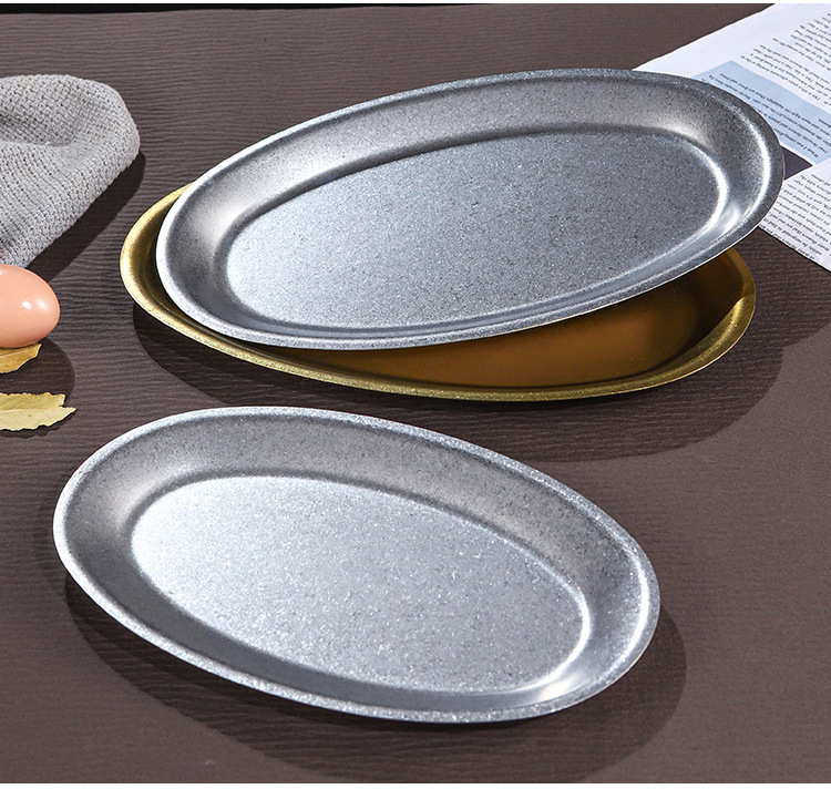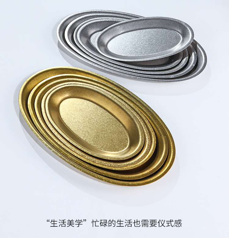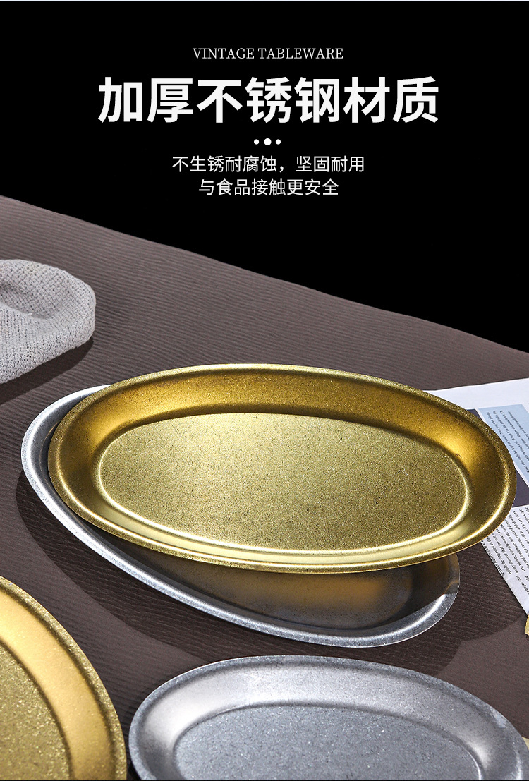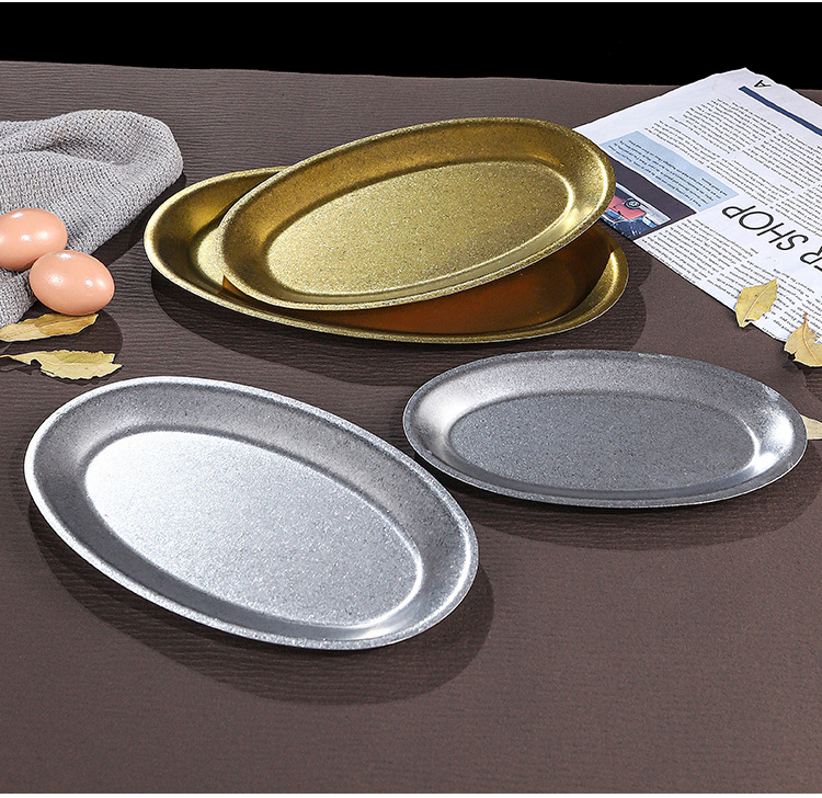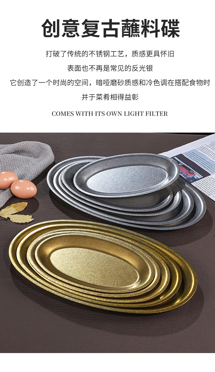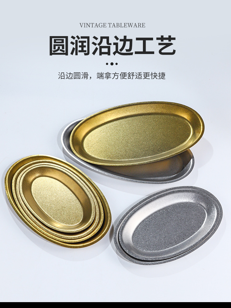 레트로 골드 스테인레스 스틸 생선 접시 타원형 접시 생선 찜 접시 골드 크리 에이 티브 달걀 모양의 접시 바베큐 접시 트레이