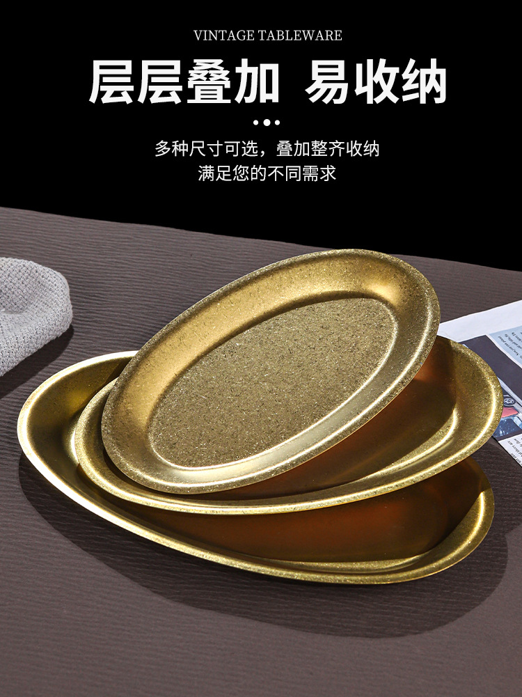 • 21*34cm 타원형 플레이트-레트로 골드