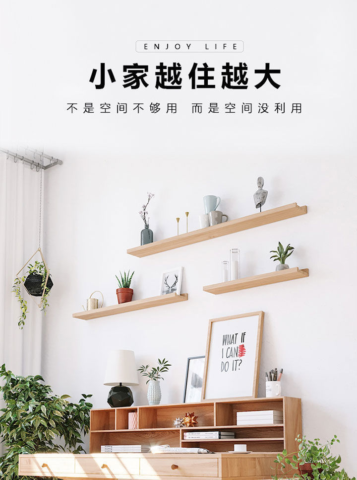 북유럽 스타일 단단한 나무 선반 매니큐어 보관 선반 펀치없는 거실 벽 선반 책장 장식