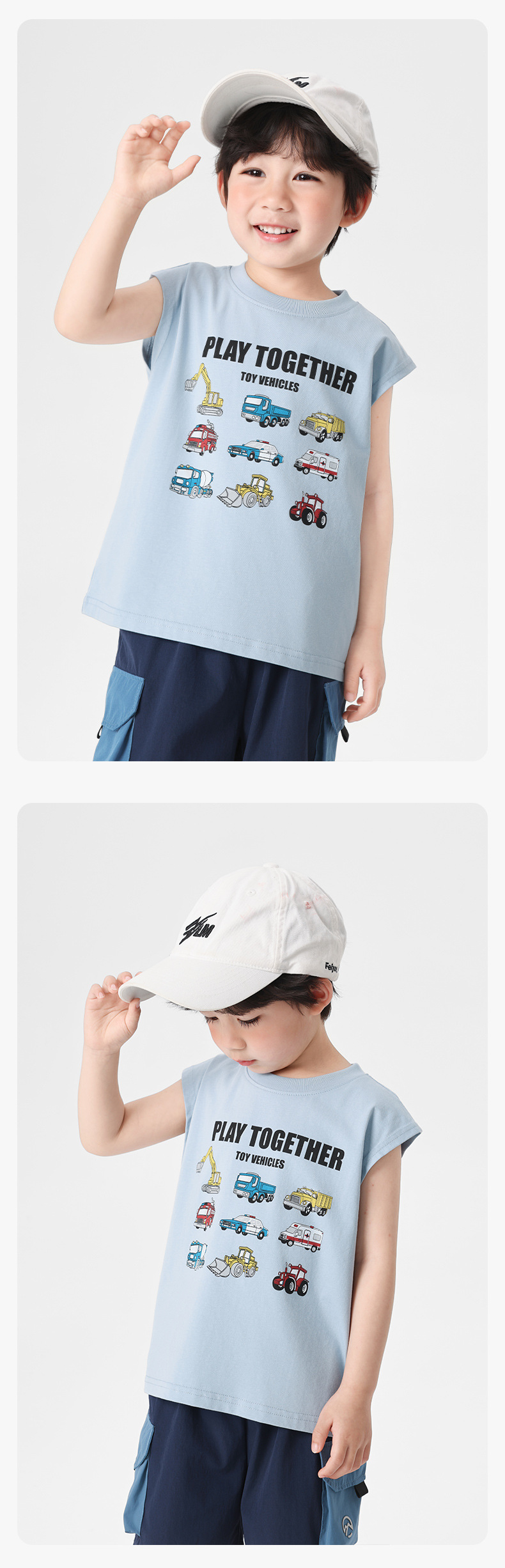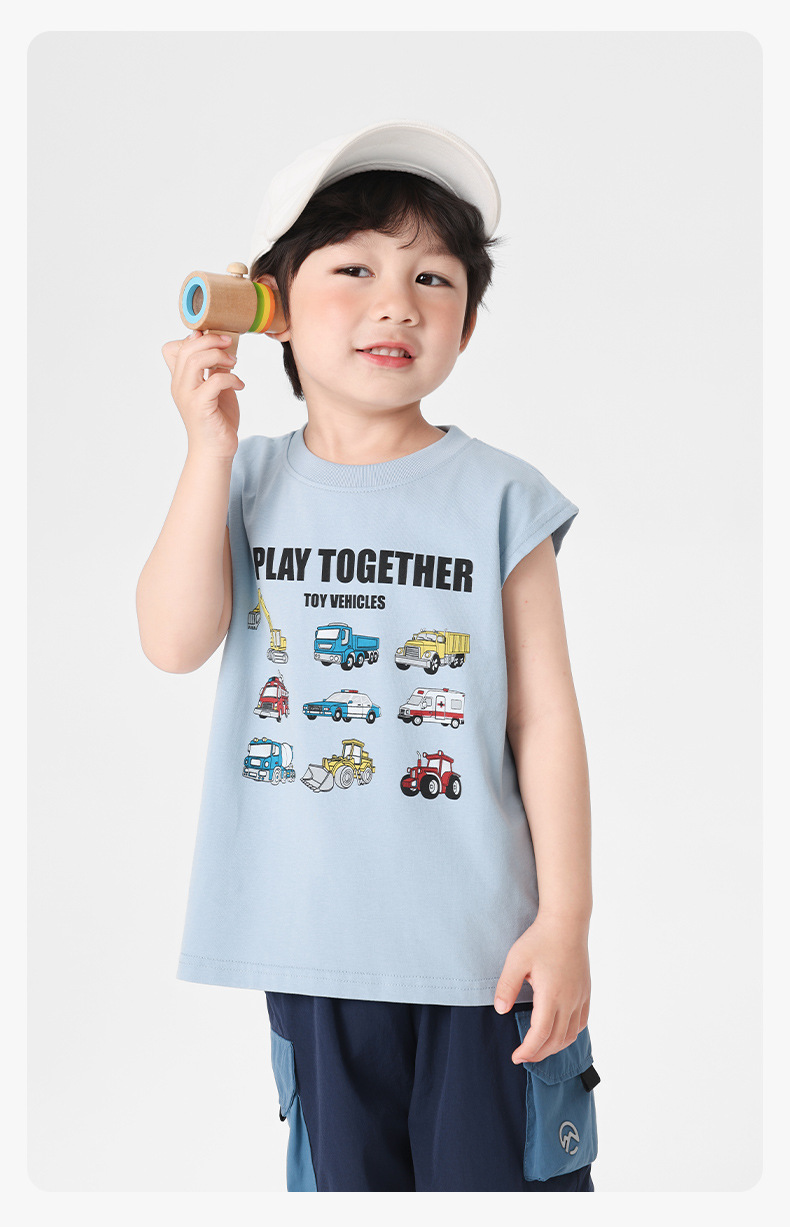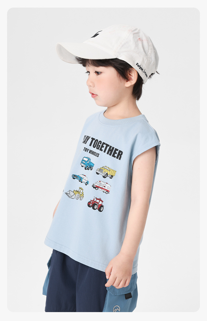 오른쪽 유럽 소년 조끼 여름 옷 2025 새로운 아동 의류 아동용 아기 어린이 여름 얇은 민소매 티셔츠스토어 가기