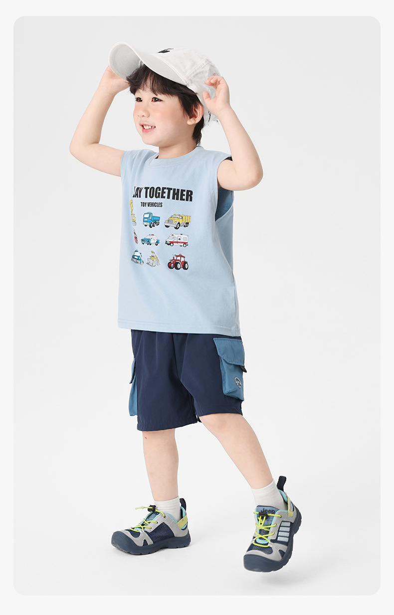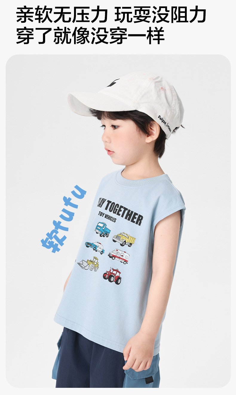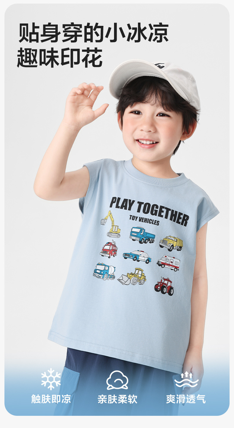오른쪽 유럽 소년 조끼 여름 옷 2025 새로운 아동 의류 아동용 아기 어린이 여름 얇은 민소매 티셔츠스토어 가기