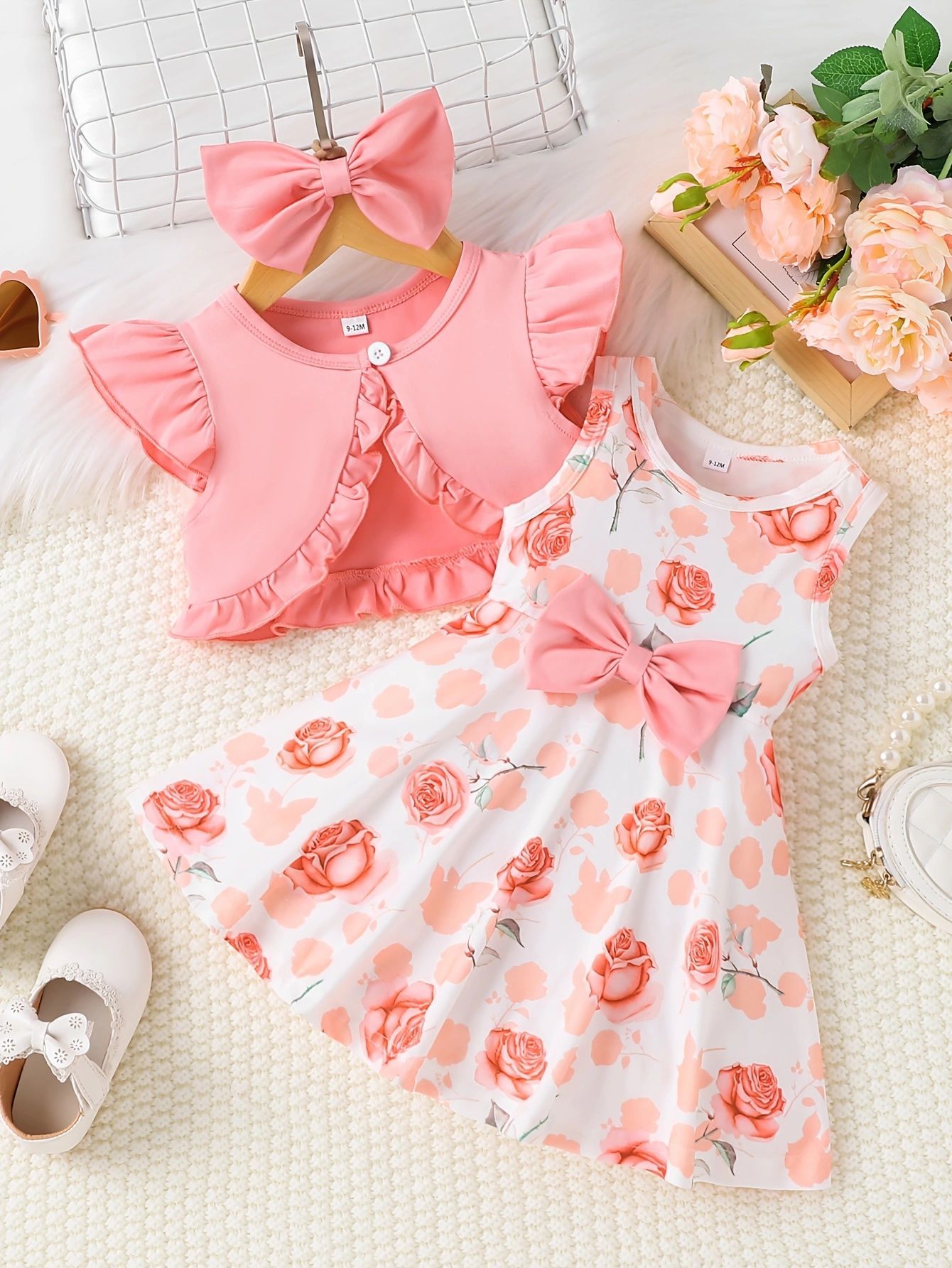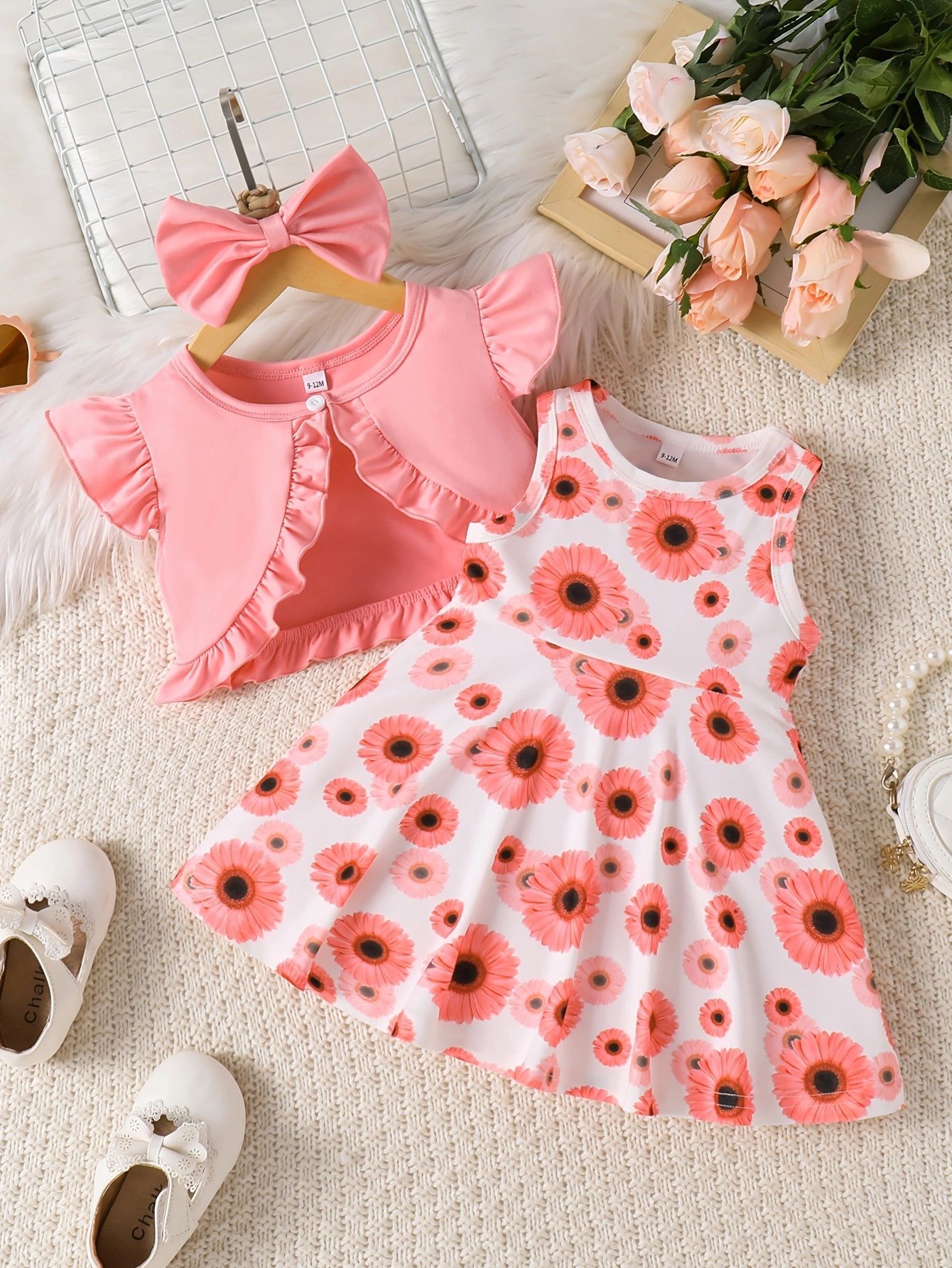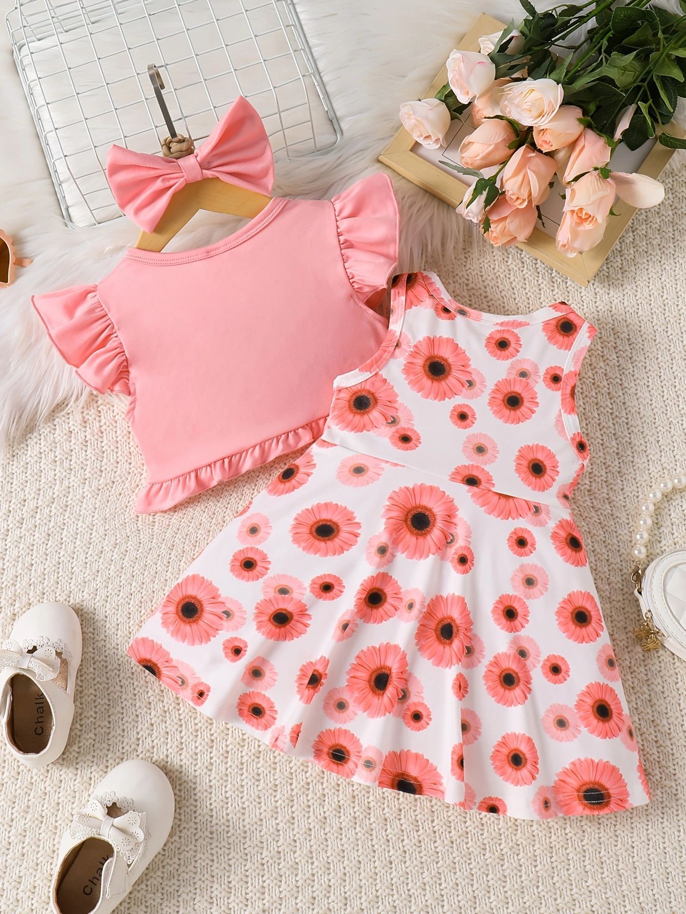국경 간 INS 유아 및 어린 소녀 여름 프린트 민소매 드레스 반팔 코트 귀여운 헤어 액세서리