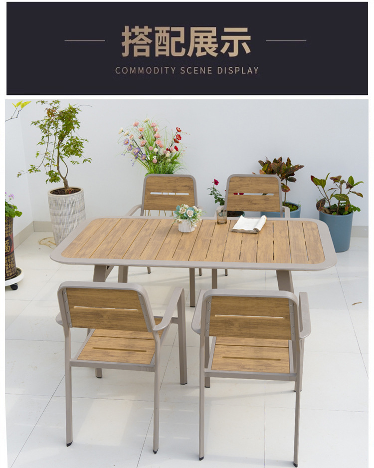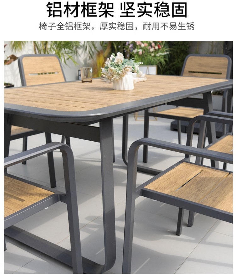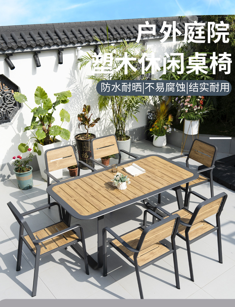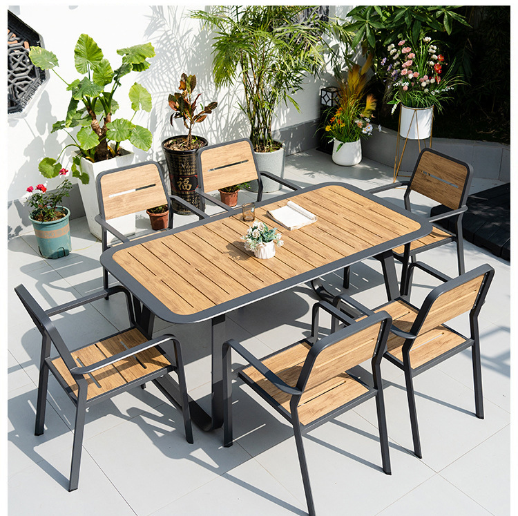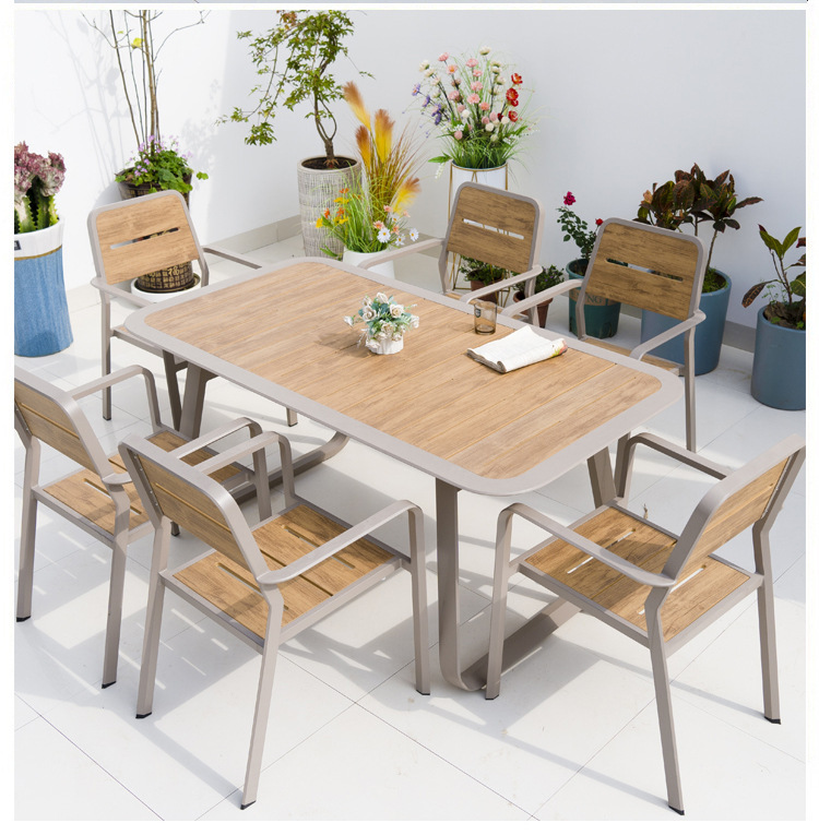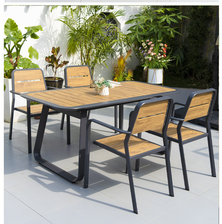 야외 테이블과 의자, 안뜰 플라스틱 목재 정원, 부식 방지 목재 테라스, 방수 및 자외선 차단제, 야외 알루미늄 아트 식탁과 의자 조합