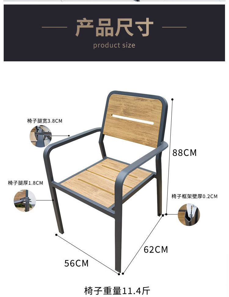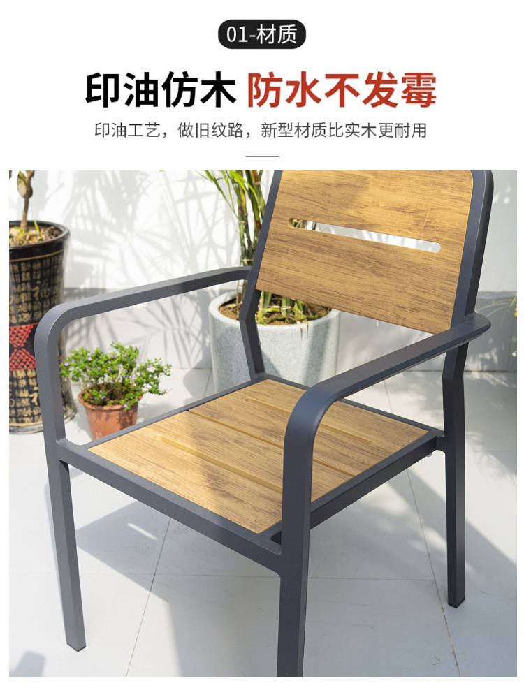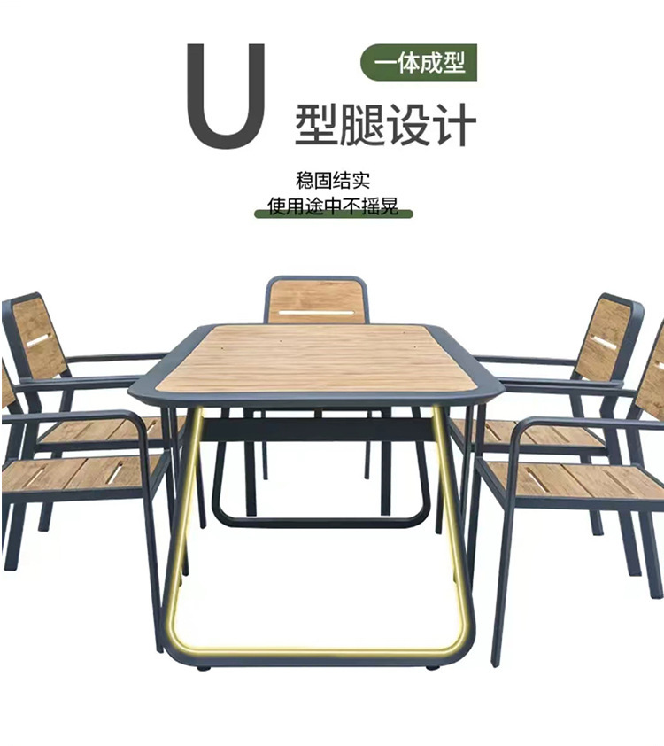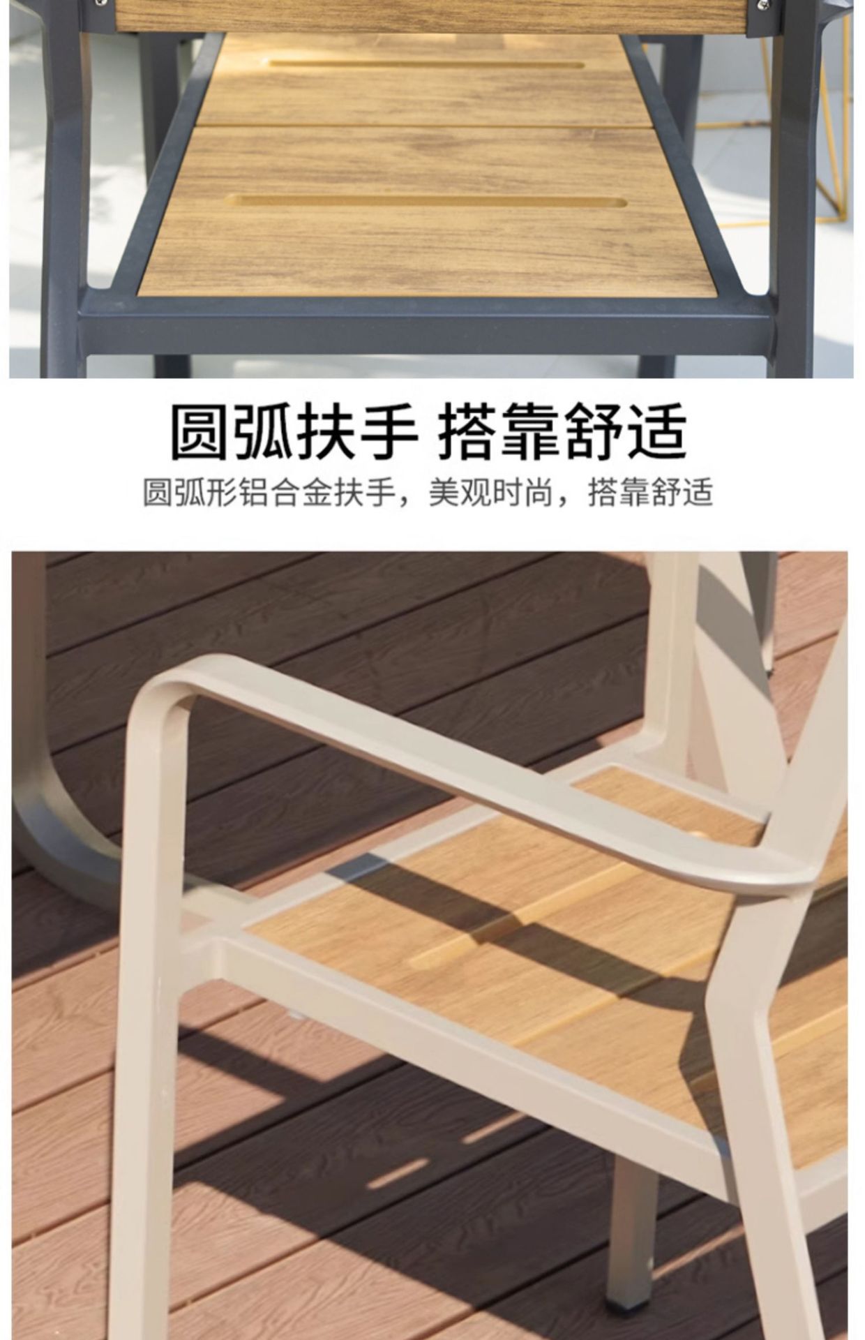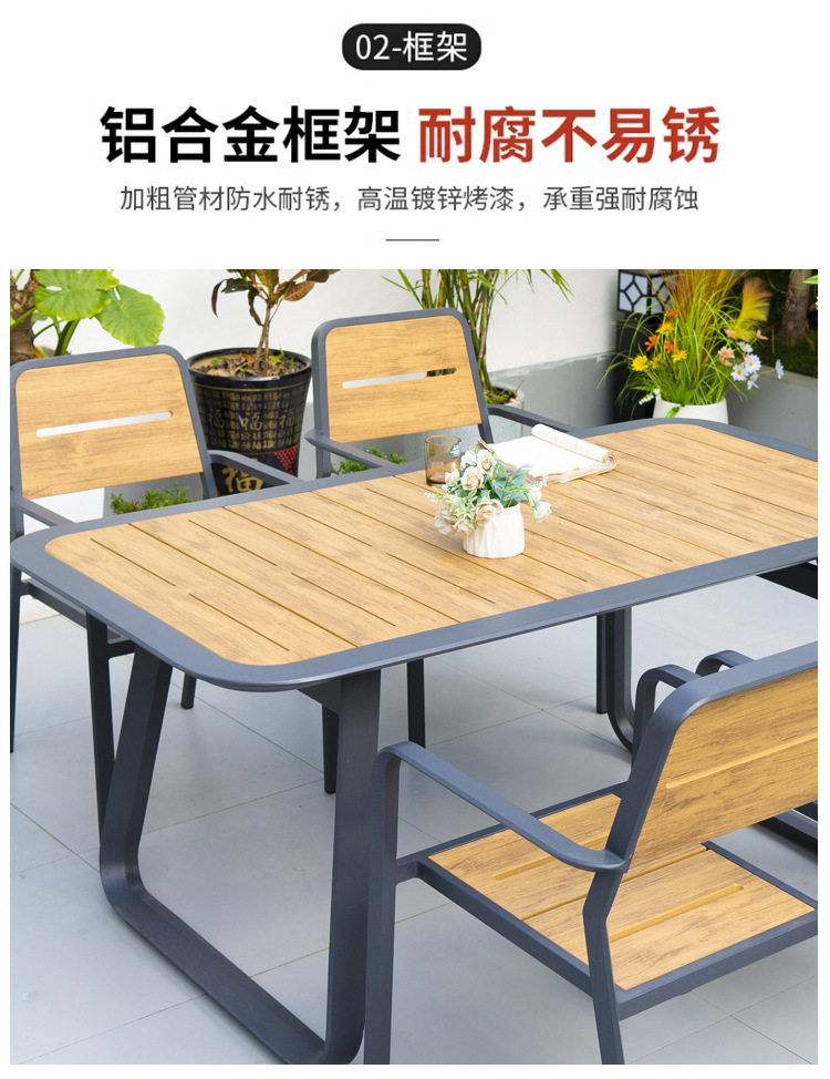 야외 테이블과 의자, 안뜰 플라스틱 목재 정원, 부식 방지 목재 테라스, 방수 및 자외선 차단제, 야외 알루미늄 아트 식탁과 의자 조합