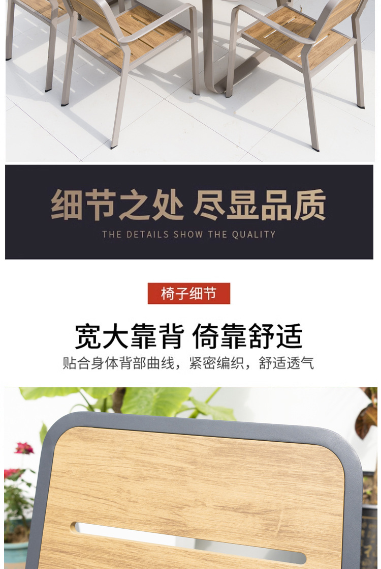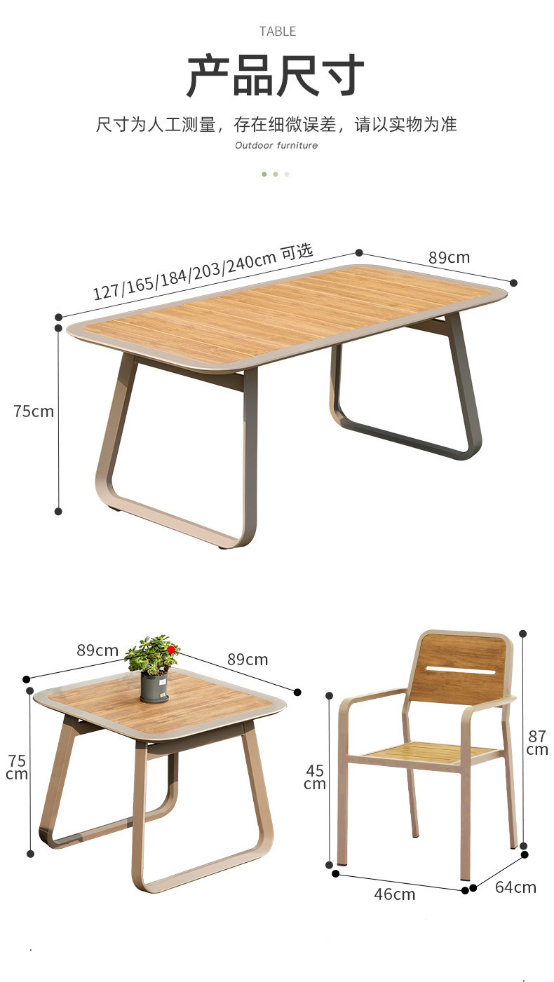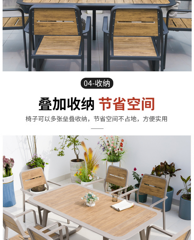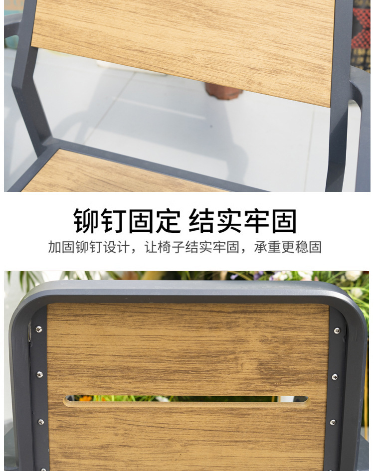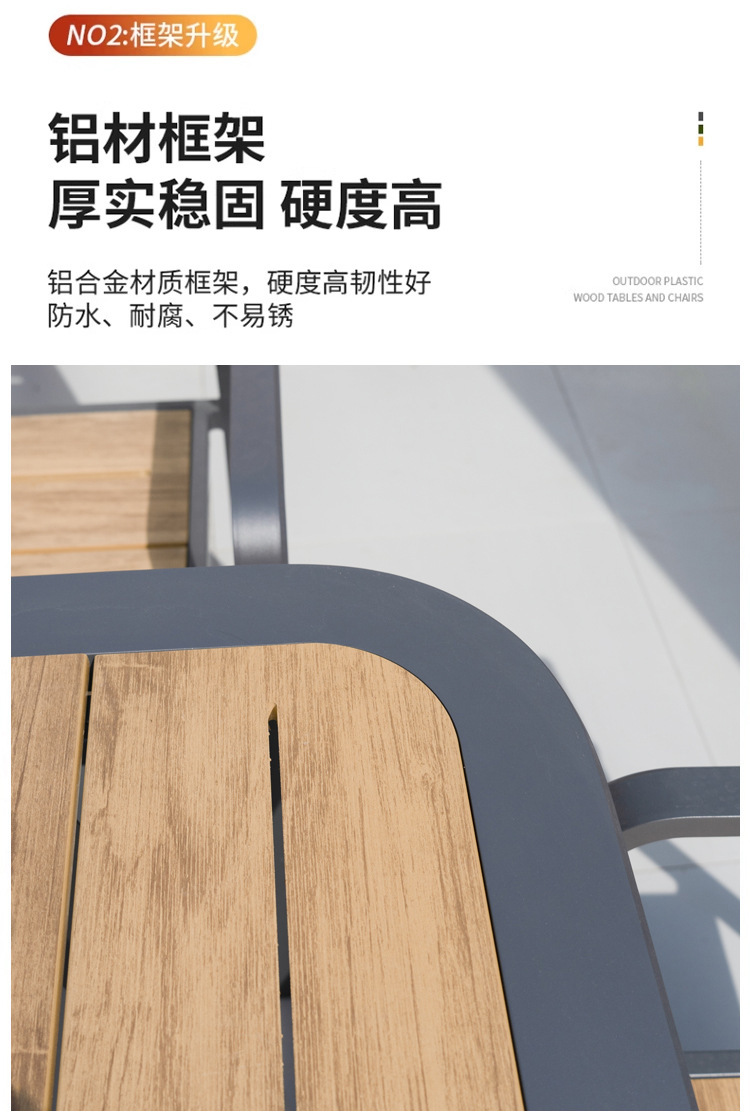 야외 테이블과 의자, 안뜰 플라스틱 목재 정원, 부식 방지 목재 테라스, 방수 및 자외선 차단제, 야외 알루미늄 아트 식탁과 의자 조합스토어 가기
