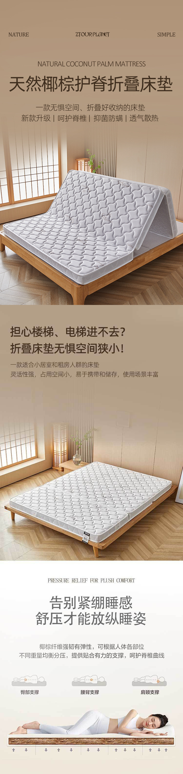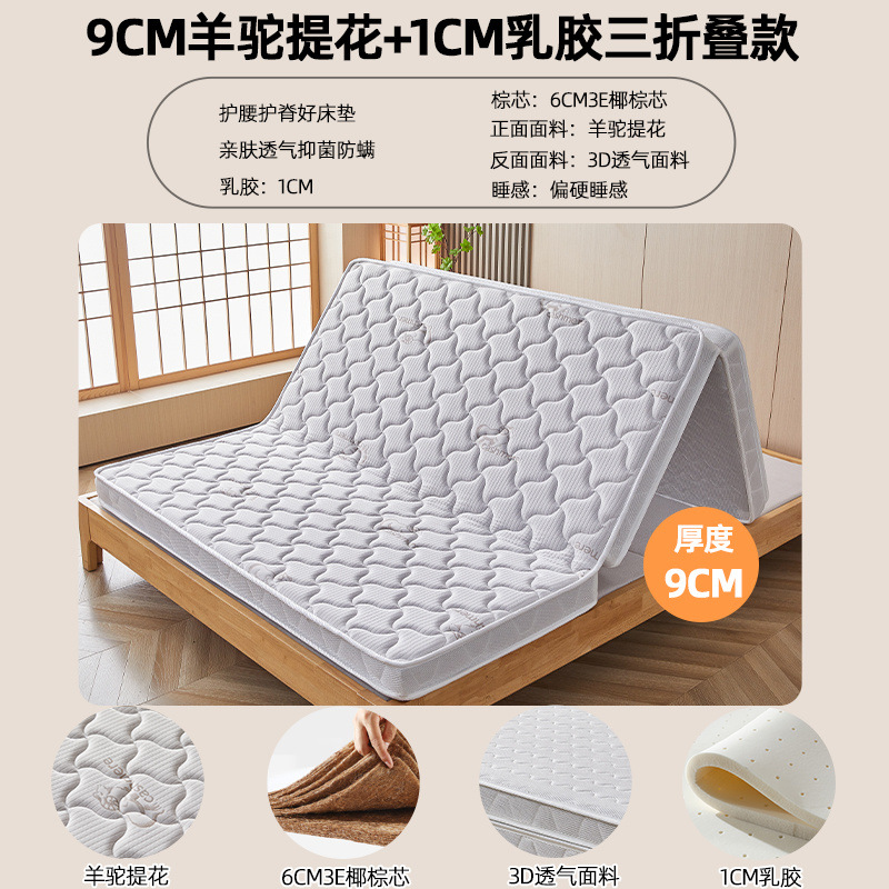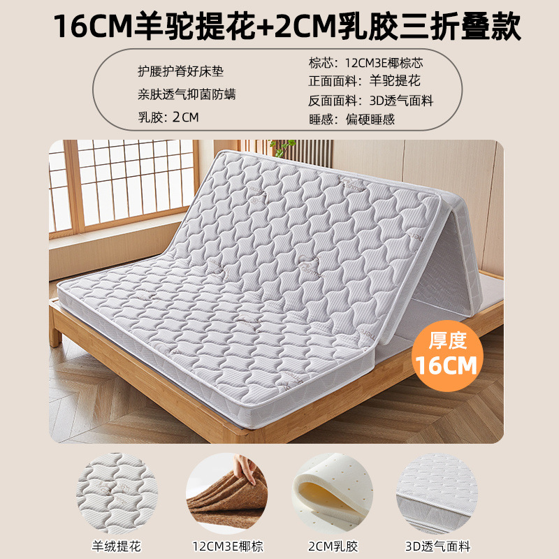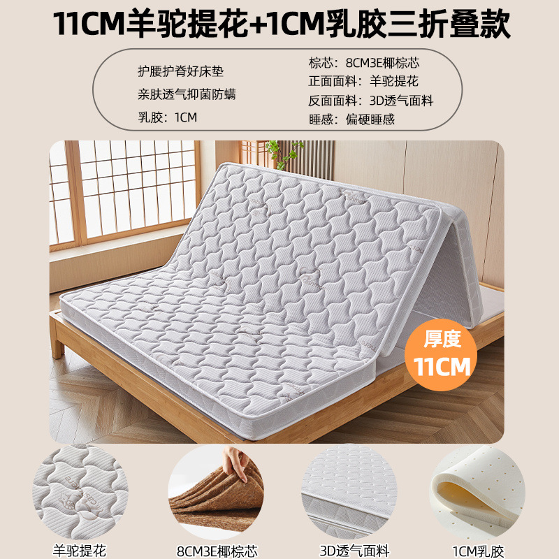 천연 코코넛 야자 매트리스, 접이식 가정용 척추 보호 야자 라텍스 어린이 야자 매트, 학생용 두꺼운 다다미 매트스토어 가기