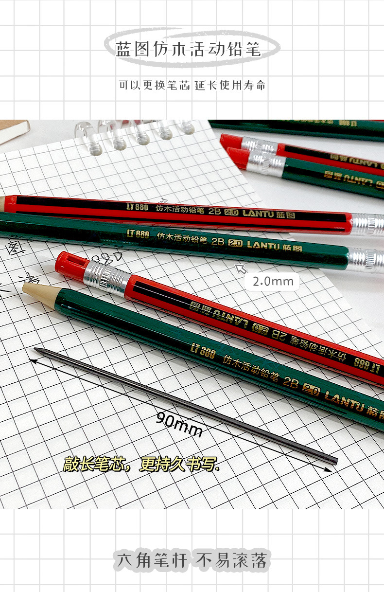 자동 연필 초등학생 플라스틱 프레스 연필 2.0mm 쓰기 펜 문구 도매 샤프 펜슬 육각 막대스토어 가기
