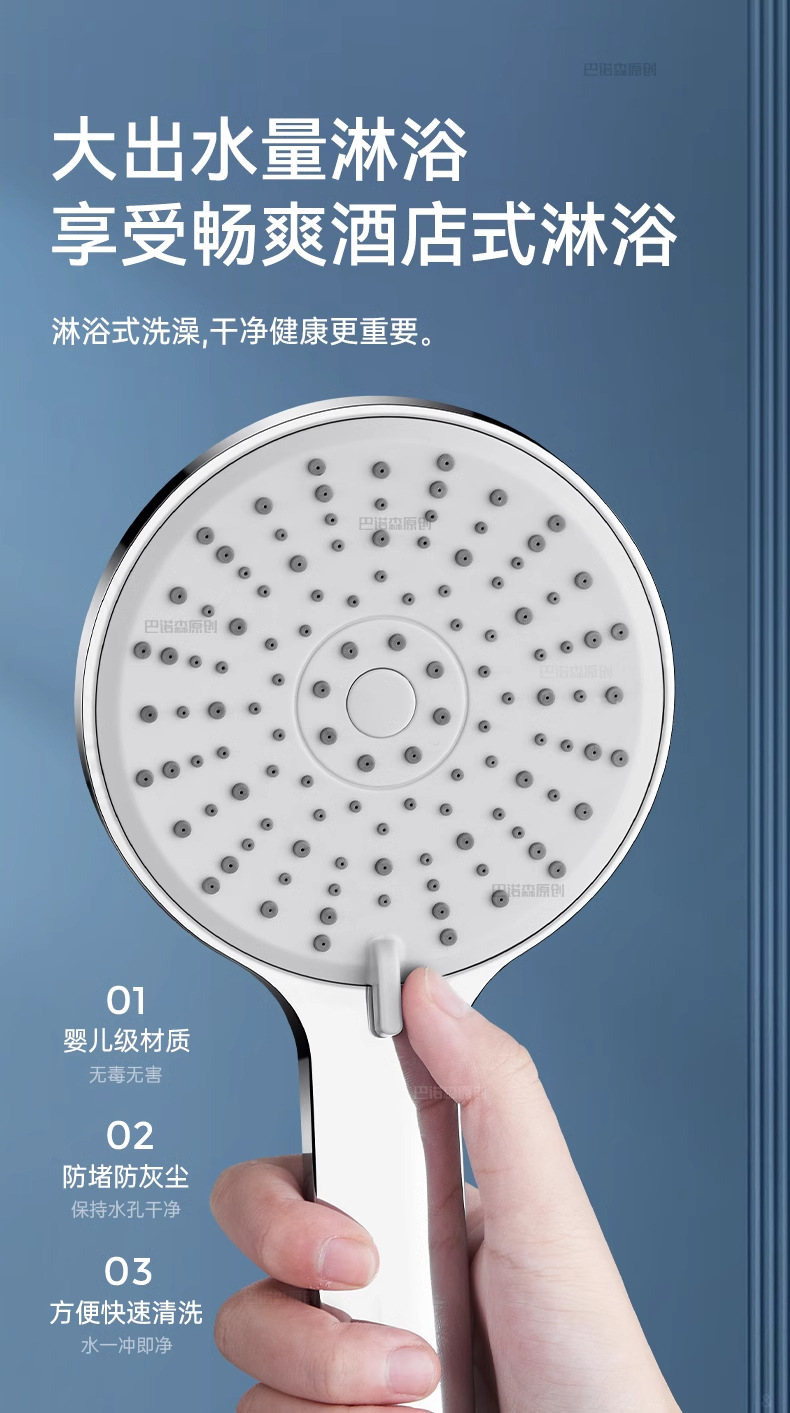 대용량 물량의 대형 샤워헤드, 두꺼운 구멍, 비압력 샤워헤드, 싱글헤드 샤워, 욕실 샤워기