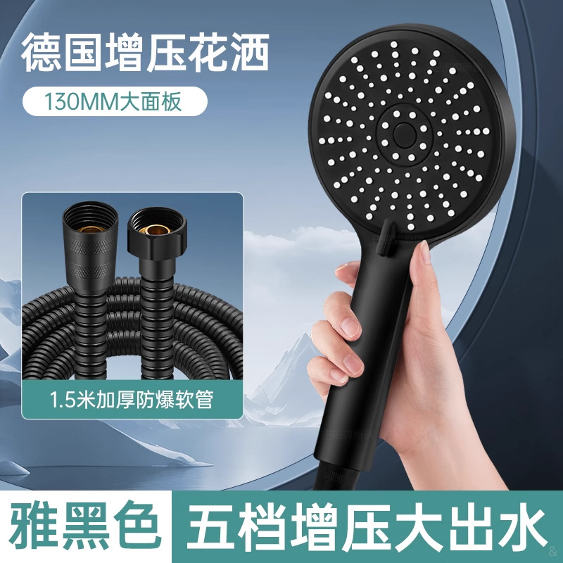 • [엘리강트 블랙 2] 플래그십 5단 슈퍼차저 샤워기 + 1.5m 방폭호스 + 대형 브라켓