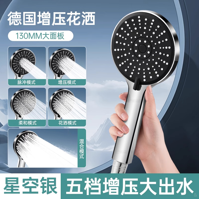 • [스타실버2] 플래그십 5단 슈퍼차저 샤워기 + 1.5m방폭호스 + 대형 브라켓