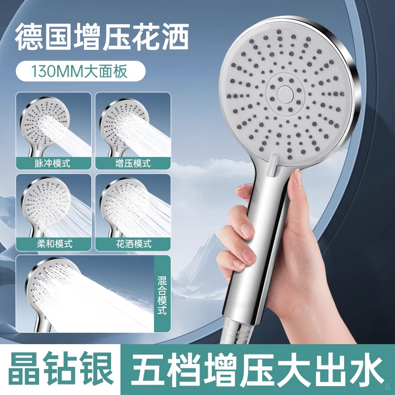 • [크리스탈 다이아몬드 실버 1] 플래그십 5단 슈퍼차저 샤워기 + 1.5m 방폭호스