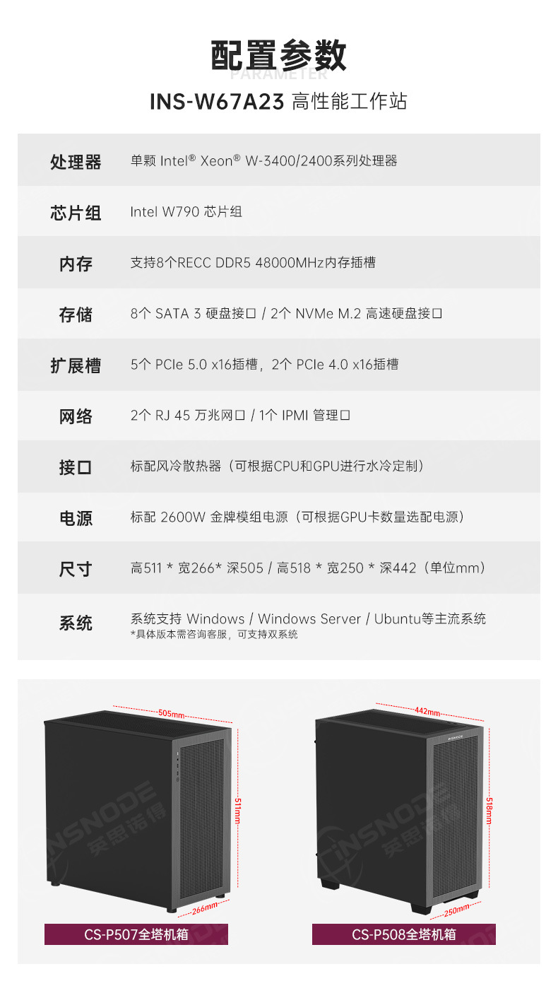 INSNODE(Xeon W67A23 그래픽 워크스테이션 그래픽 카드 컴퓨터 호스트 섀시 서버)