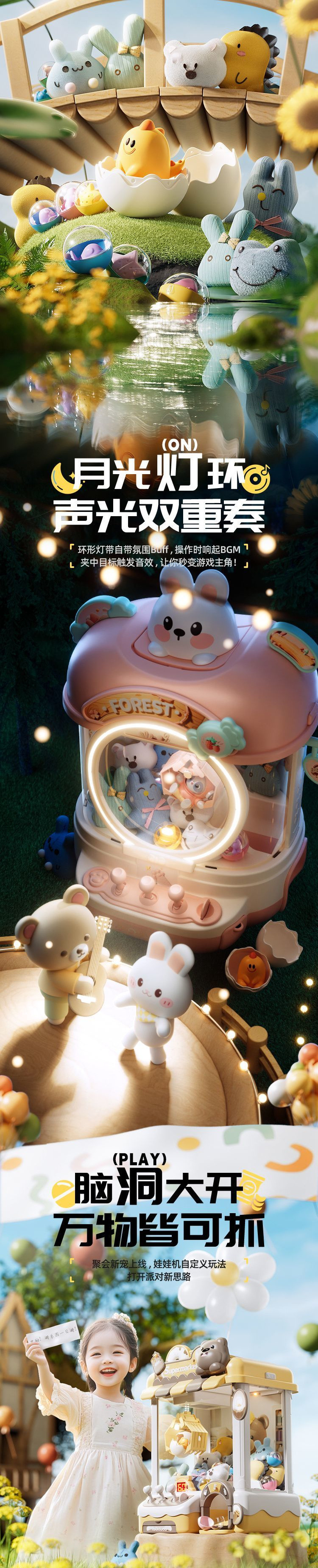 2025 새로운 어린이 인형 뽑기 기계 대형 인형 가샤폰 소형 가정용 소녀 장난감 어린이 날 선물