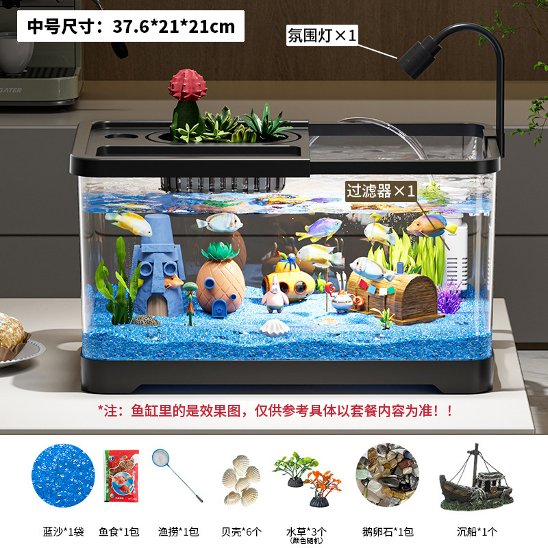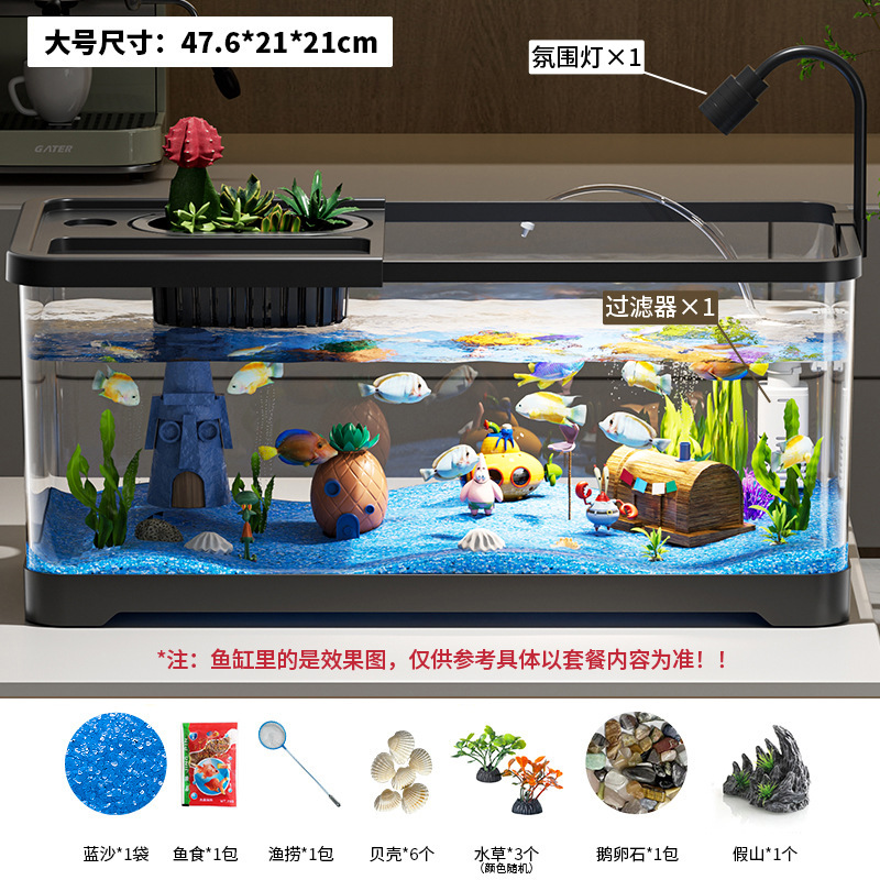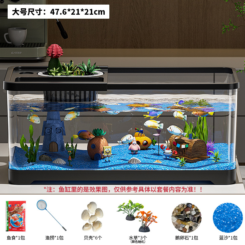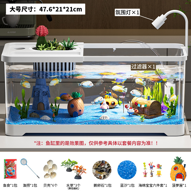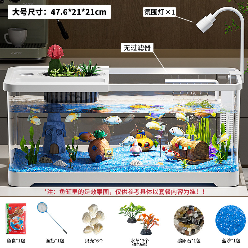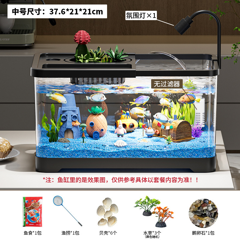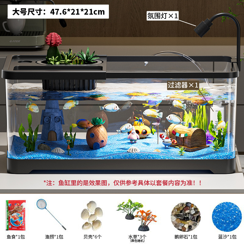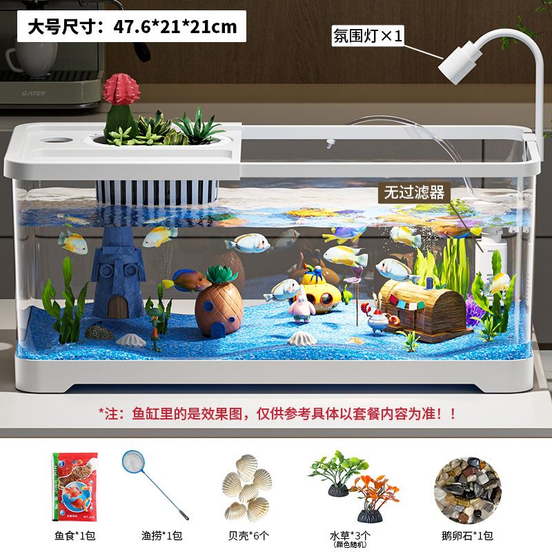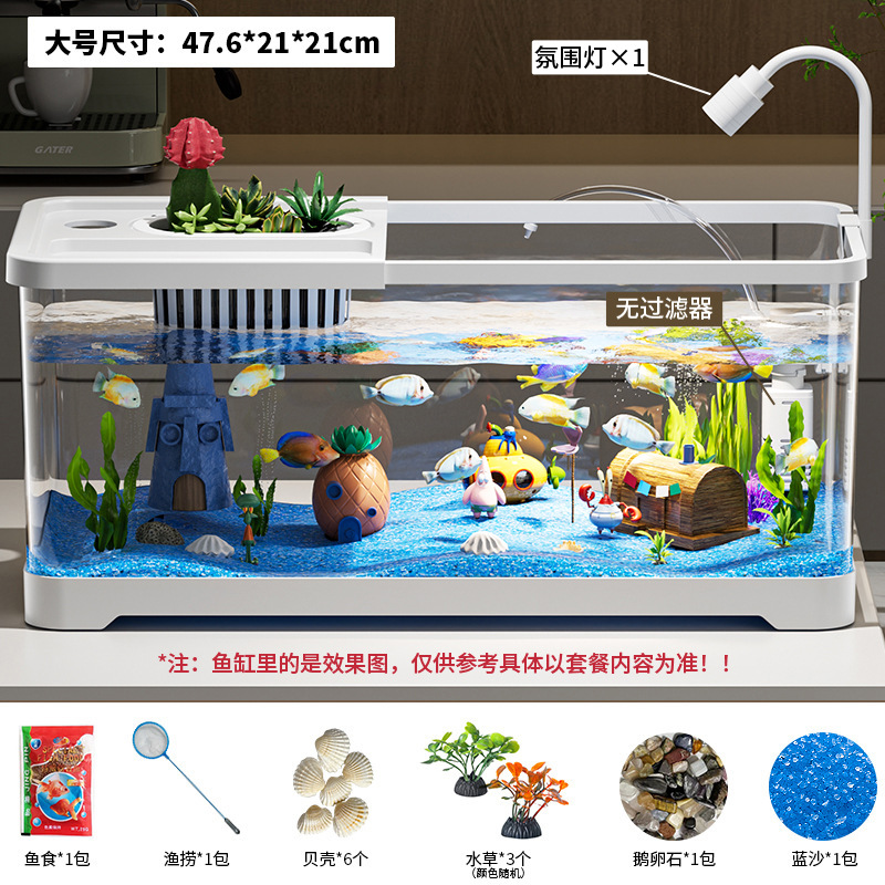 엄선된 거실 수조, 가정용 데스크탑 생태 필터 산소 발생기 일체형 수족관, 사무실용 고투명 거북이 수조