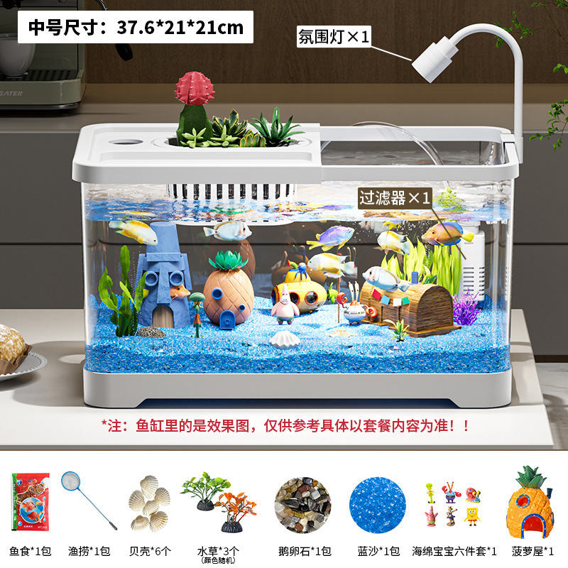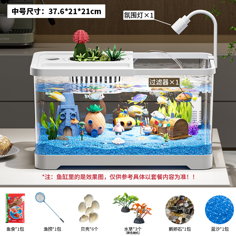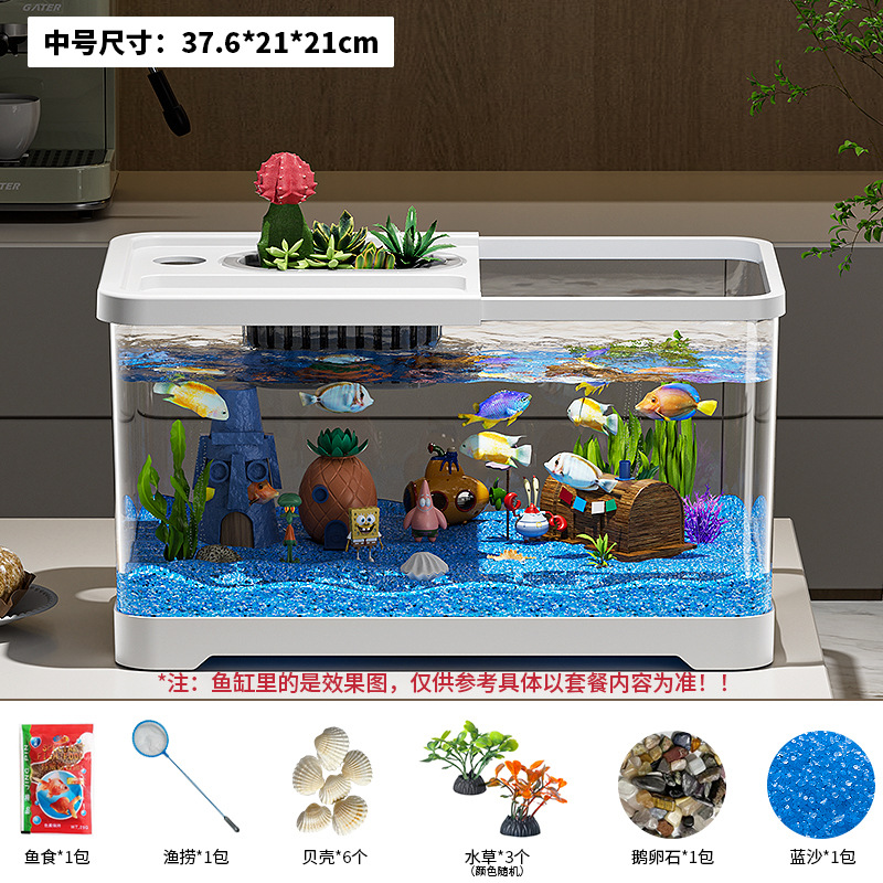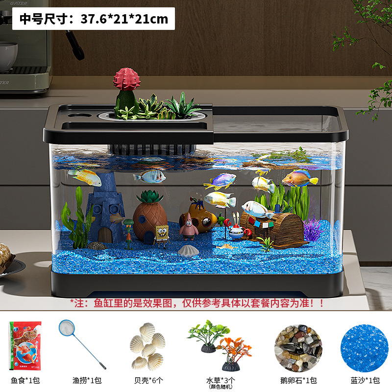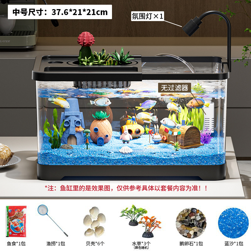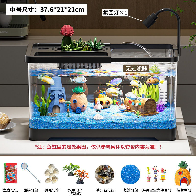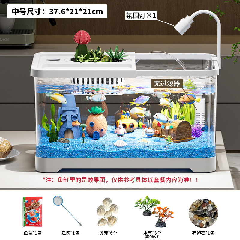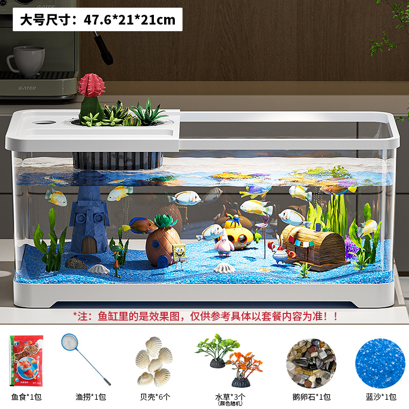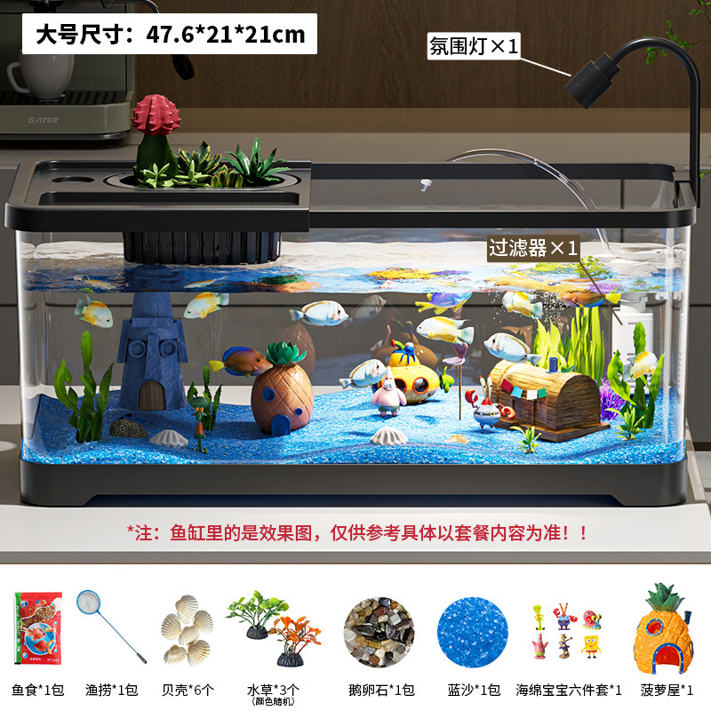 엄선된 거실 수조, 가정용 데스크탑 생태 필터 산소 발생기 일체형 수족관, 사무실용 고투명 거북이 수조