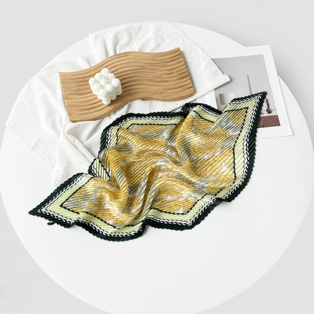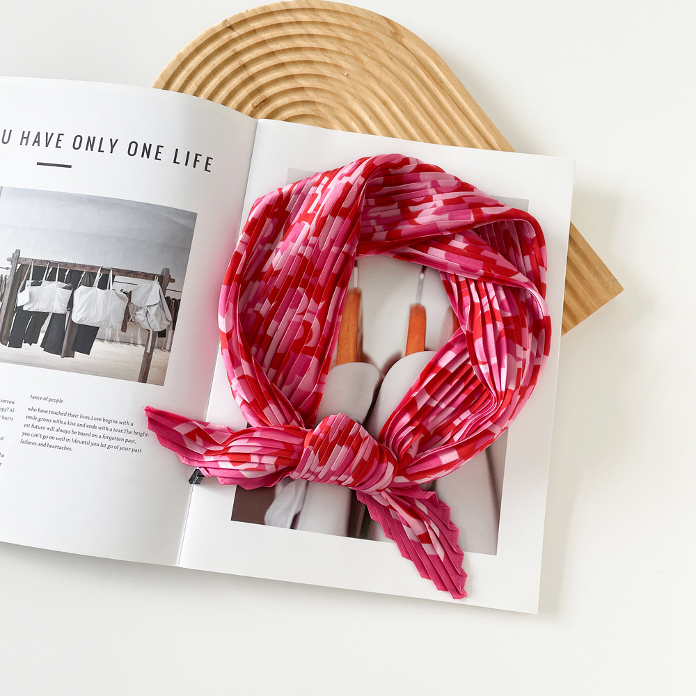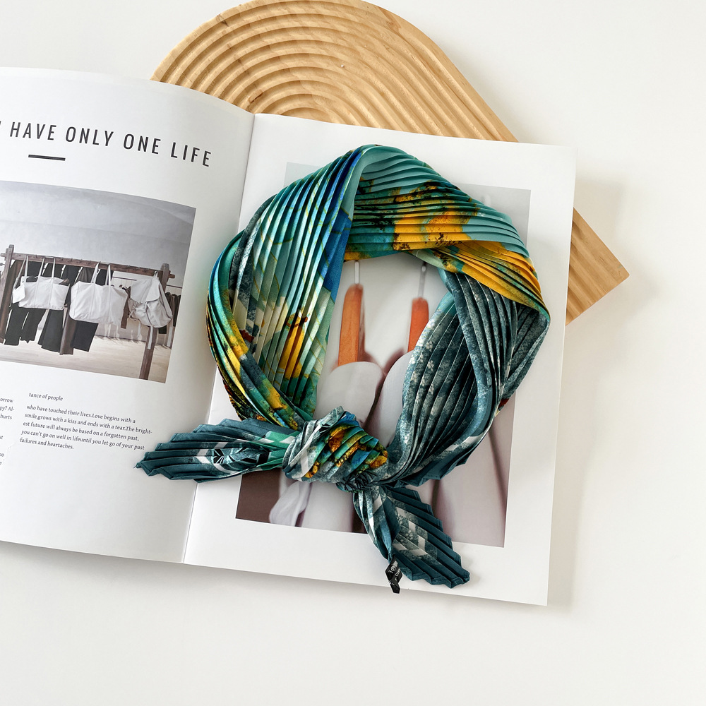 신상 주름 실크 스카프 70cm 프린트 스카프 여성용 새 스타일 넥타이 새틴 주름 스카프